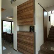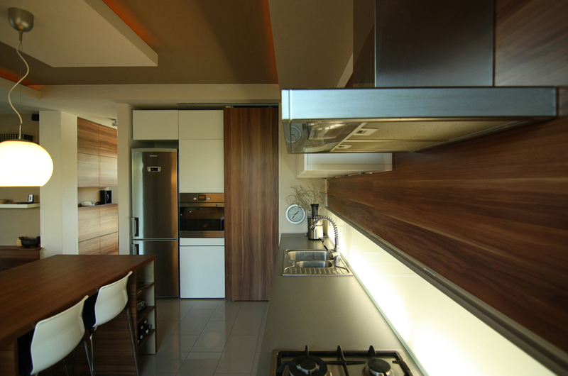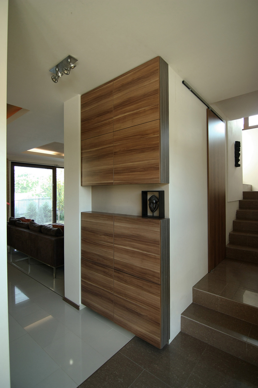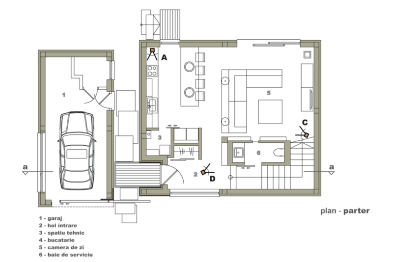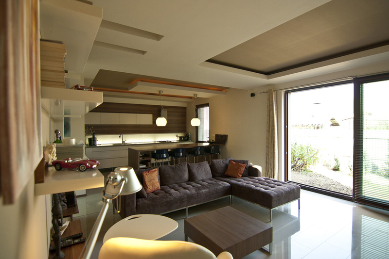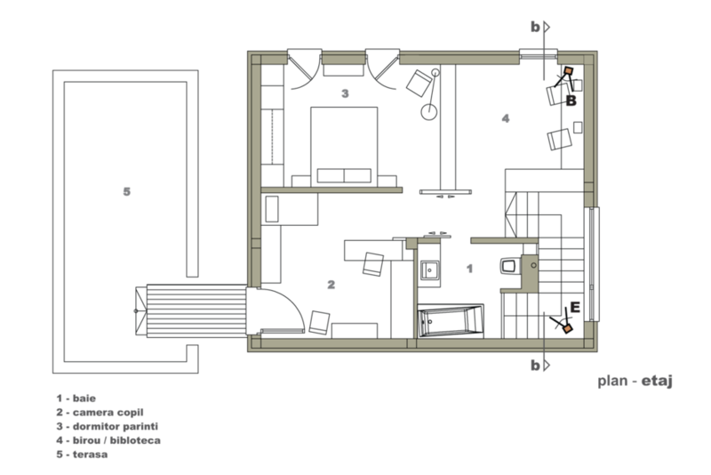 Încă din schiţele iniţiale a apărut forma simplă şi eficientă a unui cub. Rigiditatea formei şi culoarea deschisă a acestuia au tras dupa sine nevoia unui element cald "LEMNUL", care apare ca accent şi rol decorativ, reancorând volumul în sfera rezidenţială. Volumul relativ mic şi compact a dictat o anumită abordare a întregii teme de locuit: uşi glisante, lipsa caloriferelor pe pereţi, transparenţe vizuale...
