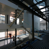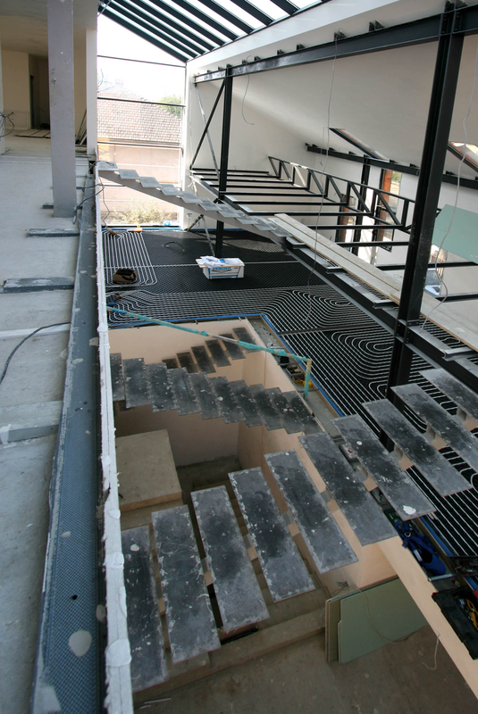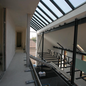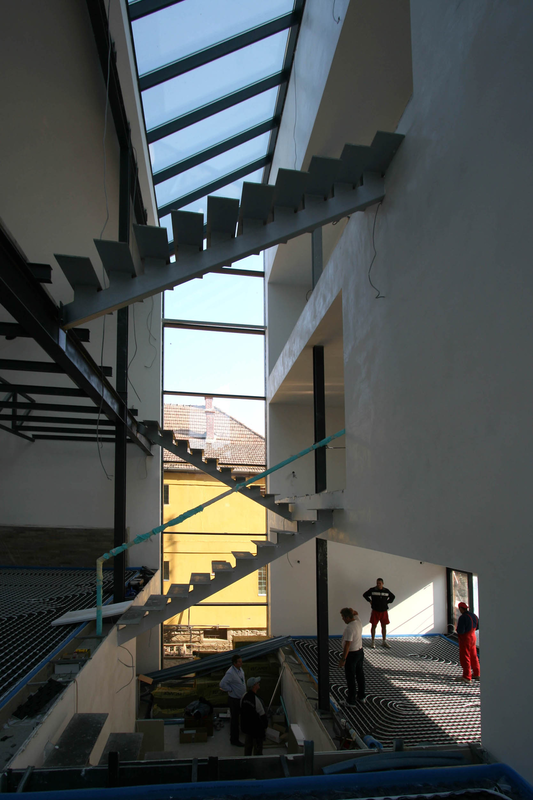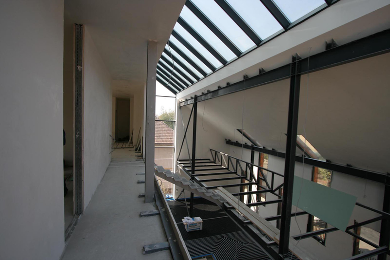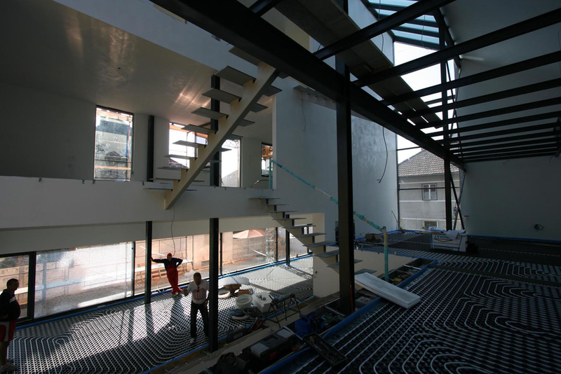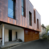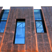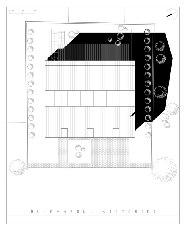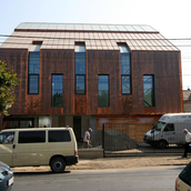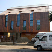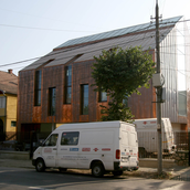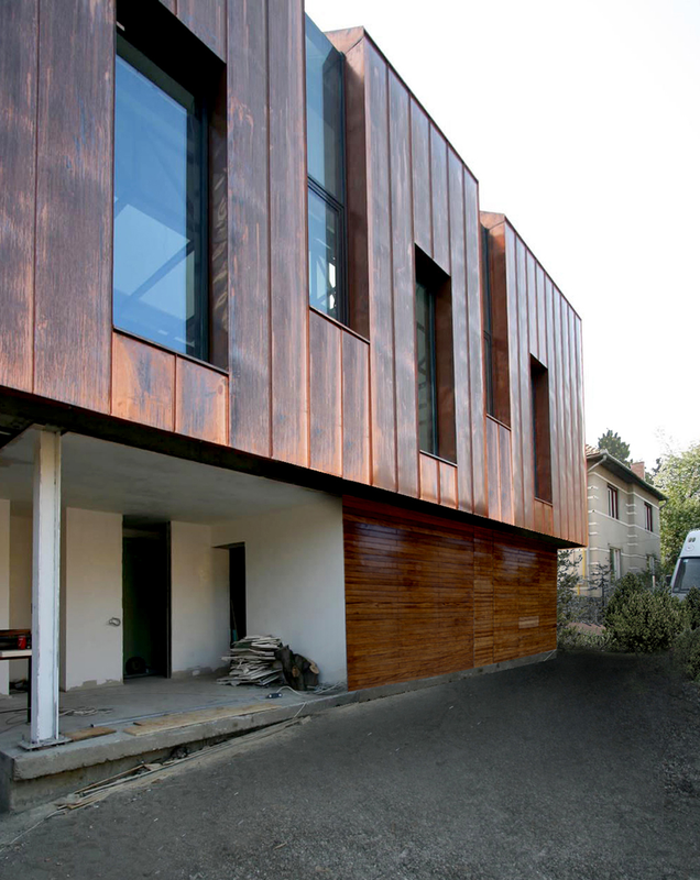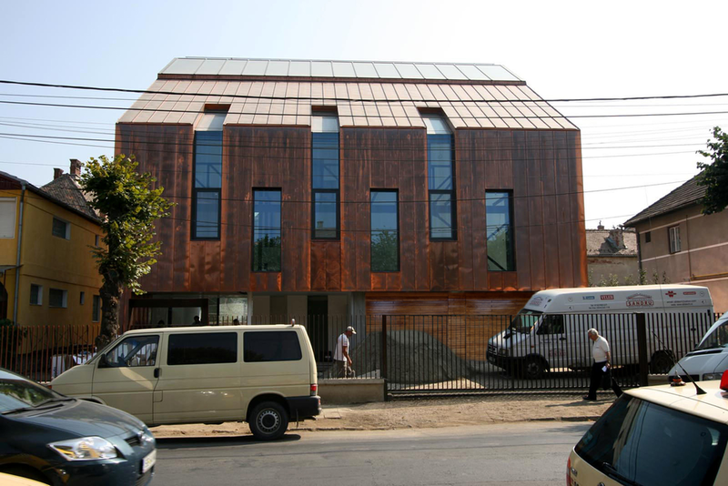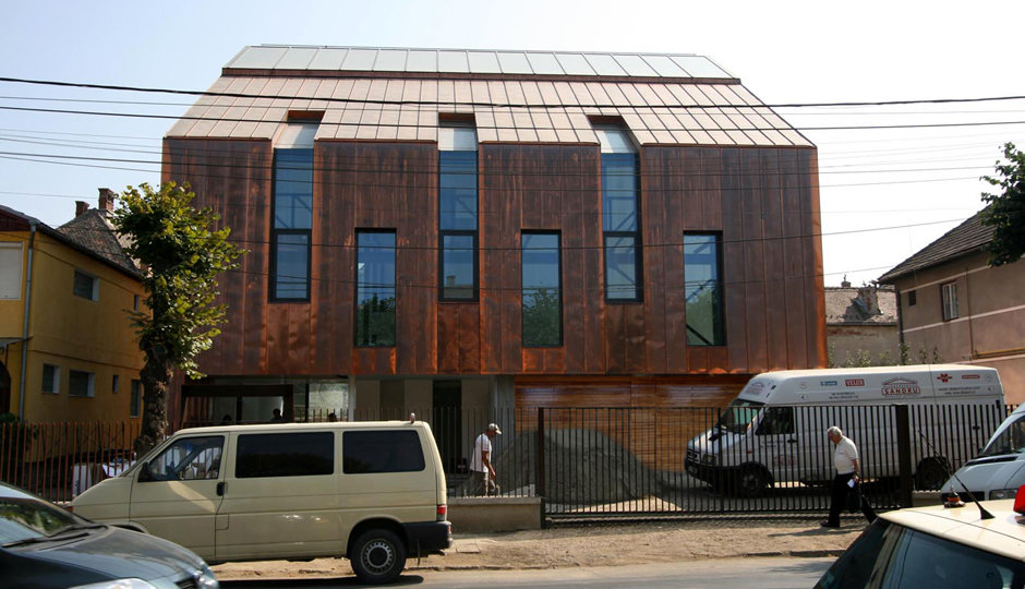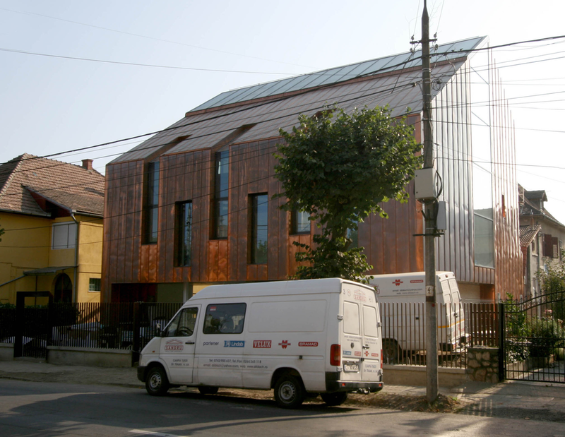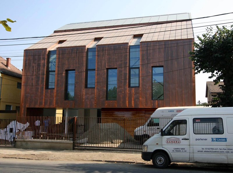 Asa am ajuns la solutia acoperirii cu cupru. Pe langa avantajul de a folosi materiale si culori naturale, cuprul si piatra, credem ca schimbarile spectaculoase in ceea ce priveste imaginea cuprului in proces continuu de oxidare, da viata constructiei dar intra si intr-un contrast, credem noi benefic cu simplitatea formei.