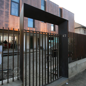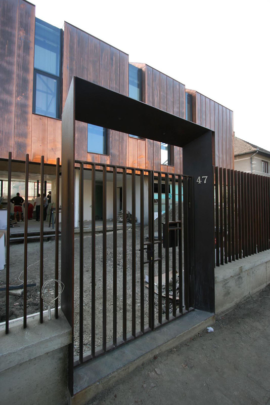 In spiritul unitatii de expresie atat gardul cat si poarta sunt realizate din otel exidat, protejate cu lac incolor.