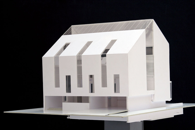 Unul din dezideratele principale privind acest proiect a fost integrarea in sit dar si tinand cont si de arhetipurile orasului Sibiu. In sprijinul acestei idei am studiat raportul golurilor caselor vechi din Sibiu, studiu ce a evidentiat proportia alungita a ferestrelor. De asemenea in raportul dintre plin si gol am constatat ca plinul are o pondere mult mai mare. Un alt element care iese in intampinarea ideii de integrare este acoperisul in doua ape. Toate acestea dau casei un aer “gotic”, care catalizeaza integrarea in zona.