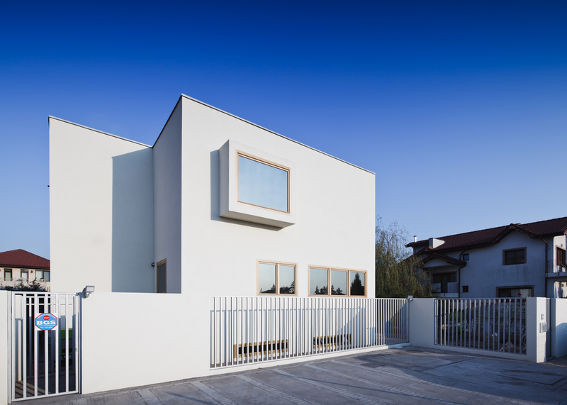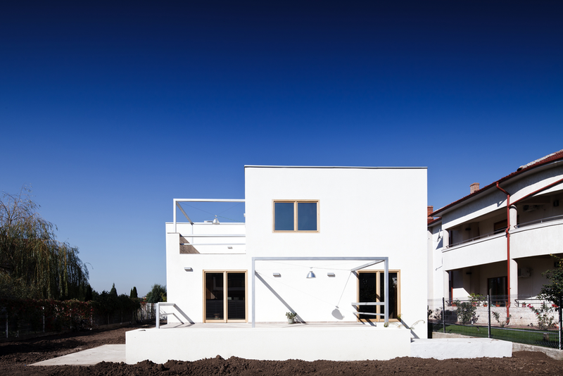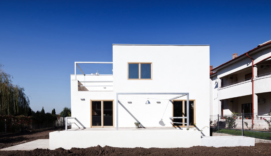 Am clarificat planul, renunţând la colţul semirotund şi mutând intrarea prin faţa casei. Am contracarat senzaţia de spaţiu pitic printr-un geam enorm către curte.