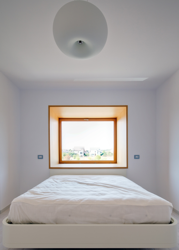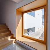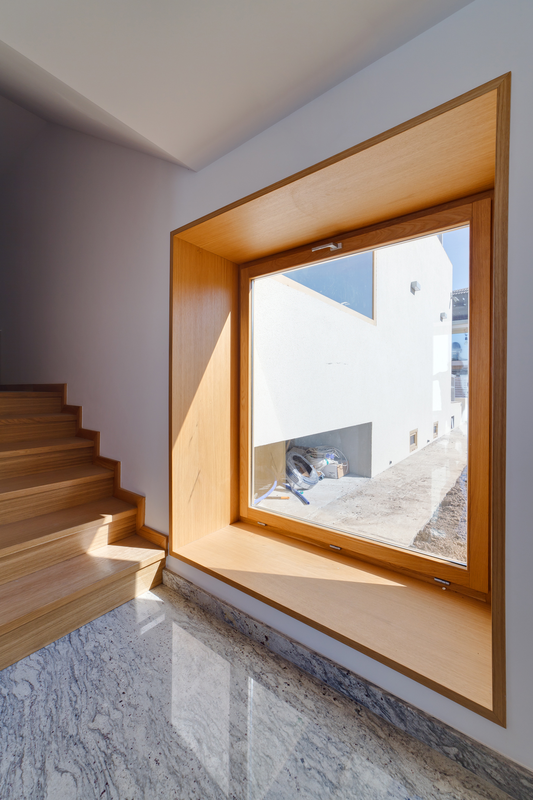 A trebuit apoi să recuperăm uneori chiar şi 20 de centimetri de abatere pe verticală a pereţilor, ceea ce ne-a împins în cele din urmă la nişte pereţi foarte groşi, atât perimetrali, cât şi interiori. Ne-a venit ideea de a valorifica aceste grosimi mari şi de a recupera cumva suprafeţele ascunse în perete. Aşa că am montat geamurile pe un schelet metalic chiar la faţa exterioară a clădirii şi am realizat nişte cutii de lemn la interior în care să se poată chiar sta. Logica acestor goluri devenite spaţii şi geometria simplă ne-au dat o gramatică a proiectului pe care am dus-o cât de departe ne-a permis structura existentă.