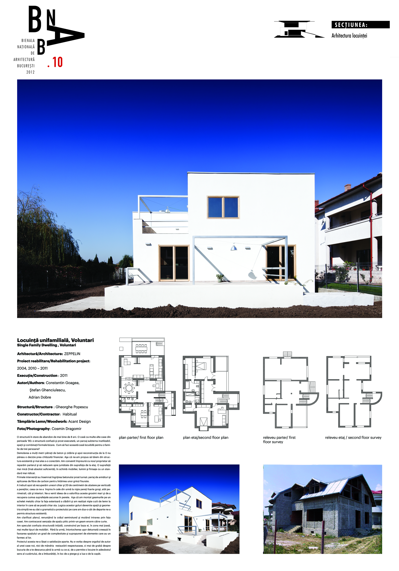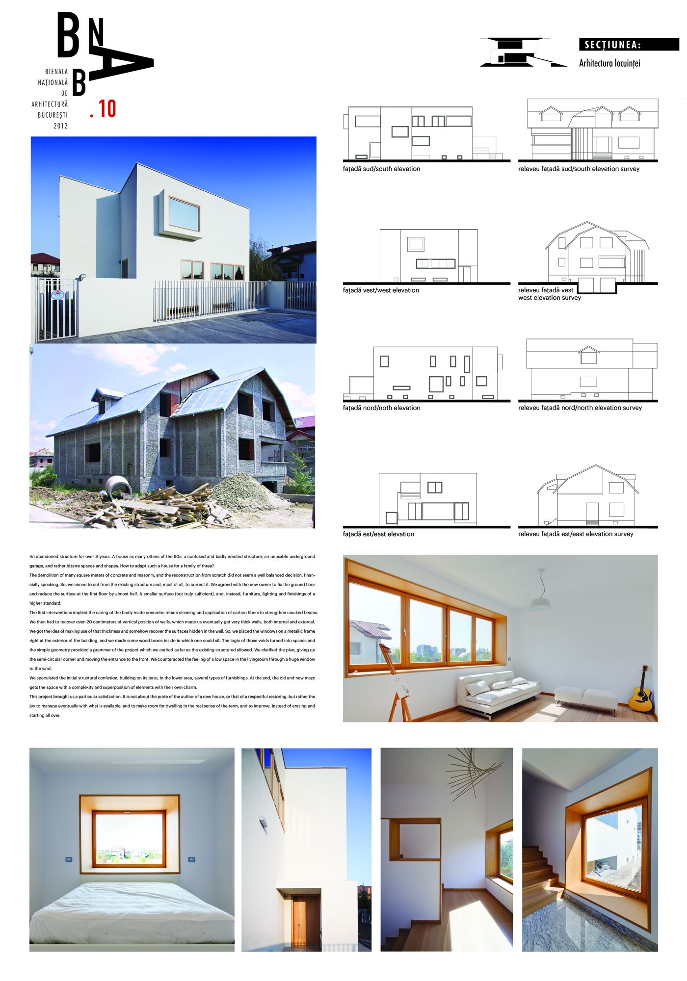 O structură în stare de abandon de mai bine de 8 ani. O casă ca multe alte case din perioada ’90: o structură confuză şi prost executată, un parcaj subterna inutilizabil, spaţii şi combinaţii formale bizare. Cum să faci această casă locuibilă pentru o familie de trei persoane?