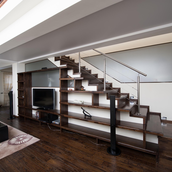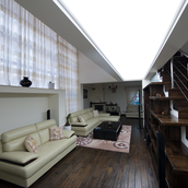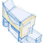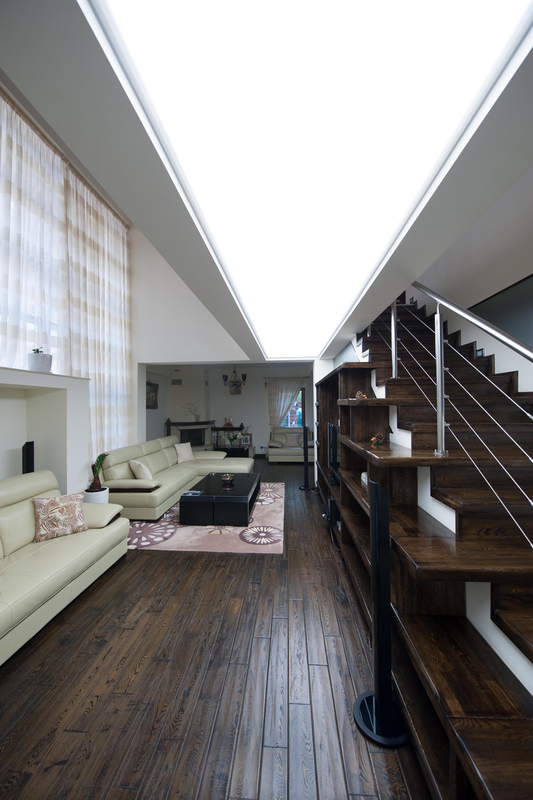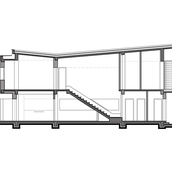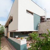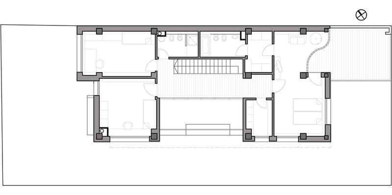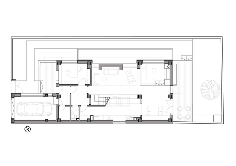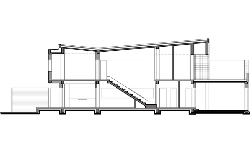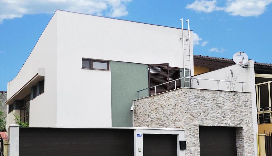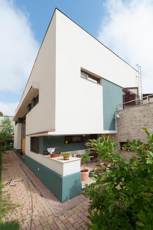 Proiectul a avut ca scop realizarea unei locuinte urbane, cu calcan, orientata est - sud- est. Locuinta are repartizata zona de zi la parter: birou, spatiu deschis cuprinzand livingul, scara si locul de luat masa, bucataria, grup sanitar, si zona de noapte la etaj: trei dormitoare, doua bai si o terasa. Livingul este deschis pe verticala spre sud, iar pasarela de la etaj, care uneste dormitoarele, priveste de sus in spatiul generos si in gradina de la sud. Fatada este configurata ca o panglica continua alba care inconjoara spatiul de locuit si aduna volumetria casei.