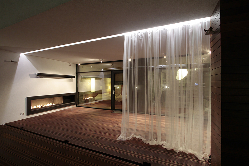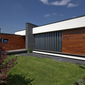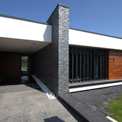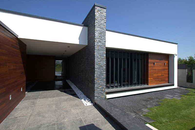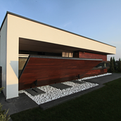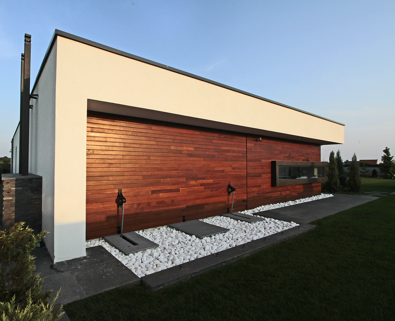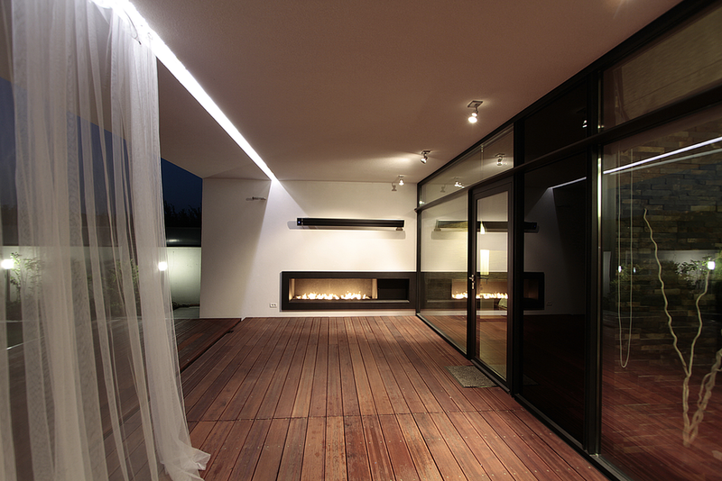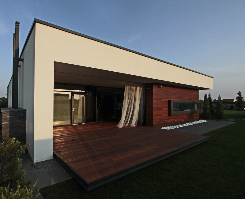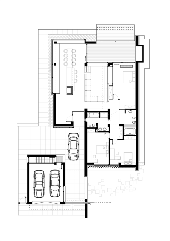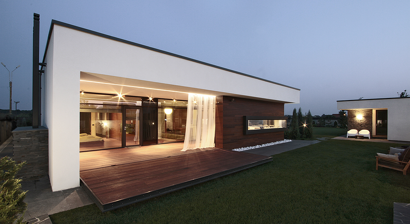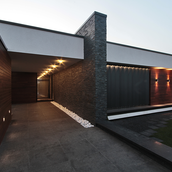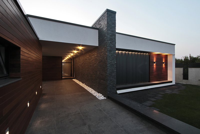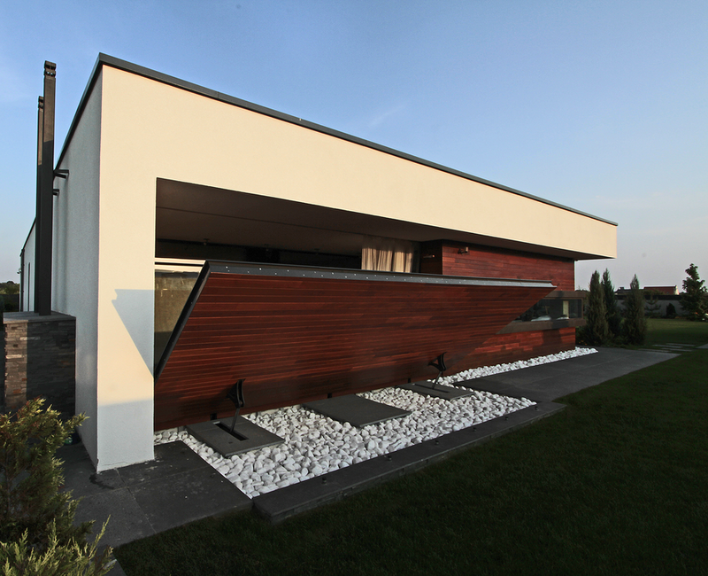 Locuinta este amplasata intr-o zona retrasa din suburbia Bucurestiului foarte putin construita in prezent. Beneficiarii au dorit o casa care sa le ofere siguranta fara a compromite insa aspectul modern si suprafetele vitrate generoase. Conceptul arhitectural a generat o serie de masuri ingenioase de securizare a spatiului, unele chiar inovative. Accesele si suprafetele vitrate au fost concentrate in zone care ulterior se pot securiza prin actionarea unor suprafete glisante, rebatabile sau pivotante.