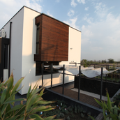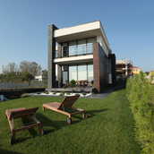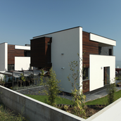 Locuinţa face parte din ansanblul rezidential Brates Lake dezvoltat de către Den Breejen Investment pe faleza lacului Brates, aflat în imediata vecinătate a Galaţiului. Ansamblul conţine un număr de 30 de locuinţe individuale grupate în patru tipuri, cu suprafeţe cuprinse între 190 si 480 mp, amplasate pe loturi cu suprafeţe între 500 şi 1300mp. Ansamblul propune un standard de locuire foarte ridicat, cu finisaje din materiale naturale si spatii generoase. Locuinţa prezentată este cea mai mica din ansamblu, fiind reprodusă pană in prezent într-un număr de 7 unităţi.