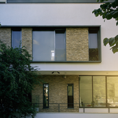 Situata la intersectia a doua strazi, Izbiceni cu Acumulatorului, casa se deschide catre imprejurimi prin parterul complet vitrat. Casa beneficiaza de lumina pe toate partile, chiar si pe zona de calcan unde exista o curte de lumina.