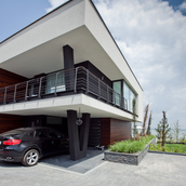 Locuinţa face parte din ansanblul rezidential Brates Lake dezvoltat de către Den Breejen Investment pe faleza lacului Brates, aflat în imediata vecinătate a Galaţiului. Ansamblul conţine un număr de 30 de locuinţe individuale grupate în patru tipuri, cu suprafeţe cuprinse între 190 si 480 mp, amplasate pe loturi cu suprafeţe între 500 şi 1300mp. Ansamblul propune un standard de locuire foarte ridicat, cu finisaje din materiale naturale si spatii generoase. Locuinţa prezentată este cea mai mare din ansamblu, fiind reprodusă într-un număr de 4 unităţi.
