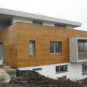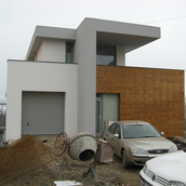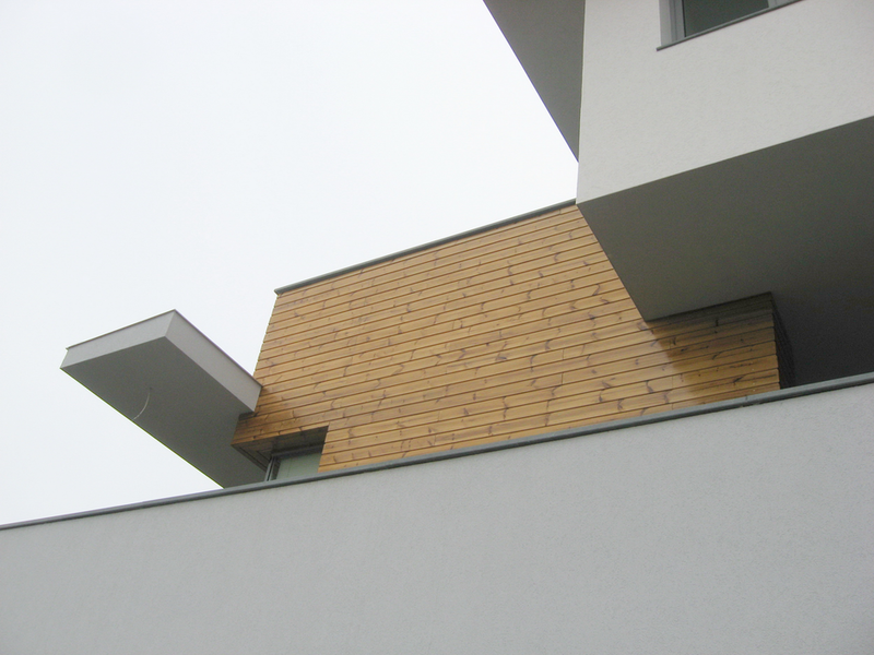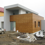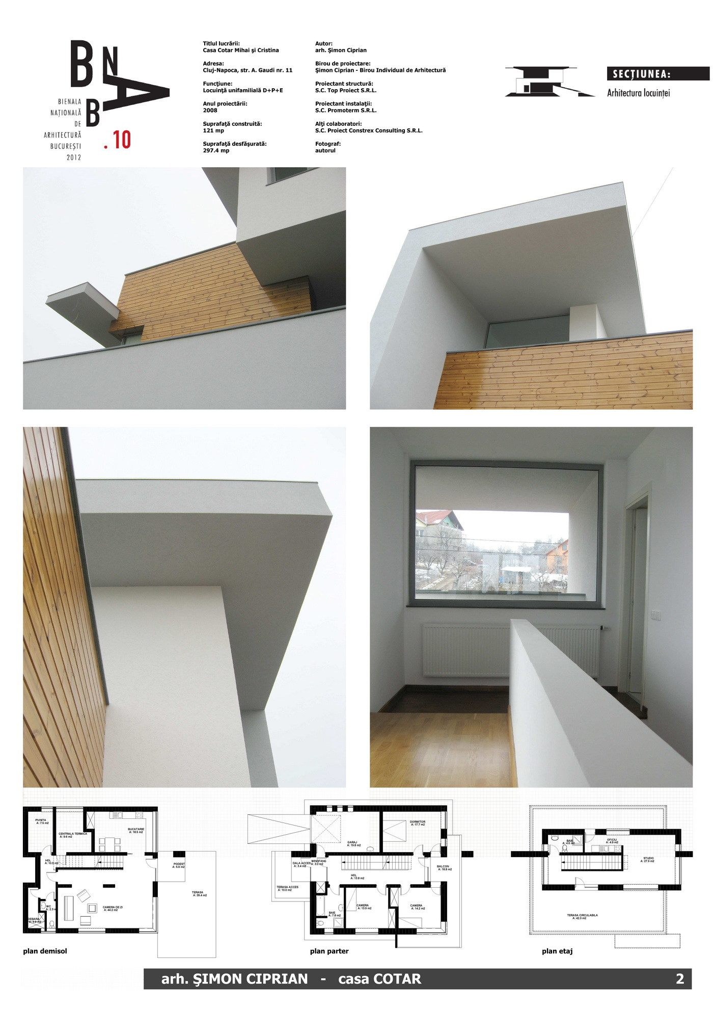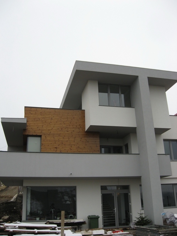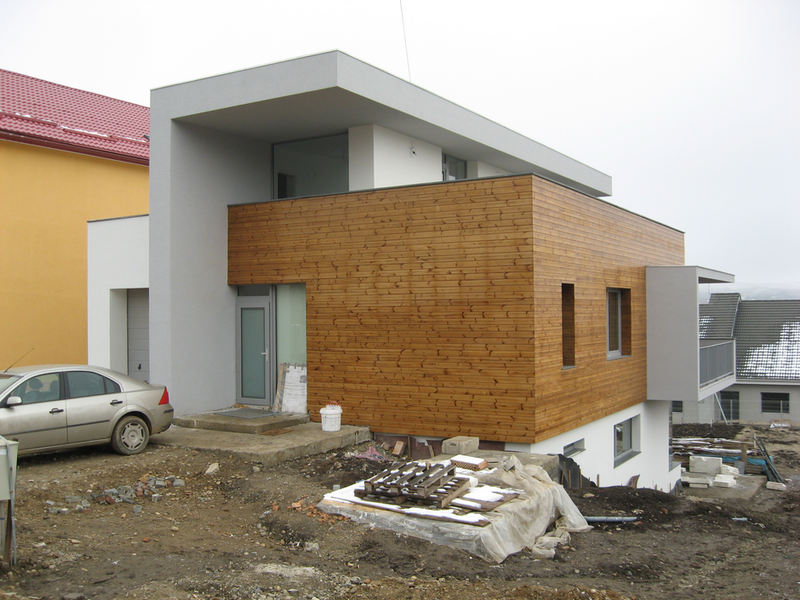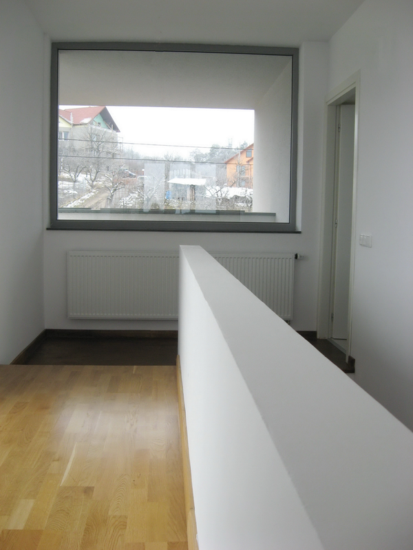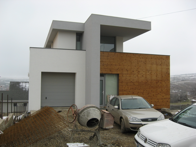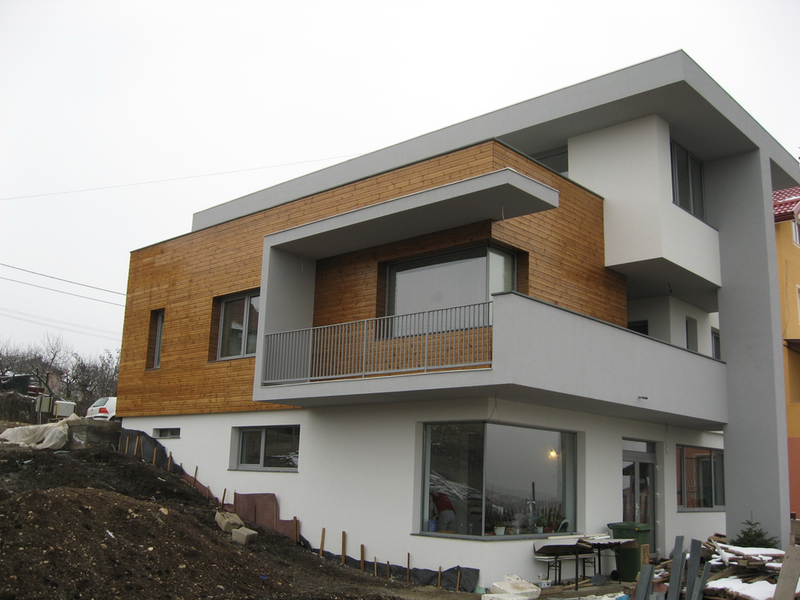 Liniile casei sunt simple, volumele clare, cu golurile şi deschiderile decupate firesc din acestea. Acoperişul-terasă pardosit cu lemn participă la viaţa casei, prin relaţia cu studioul de lucru de la etaj, unde perspectiva se deschide către peisaj.