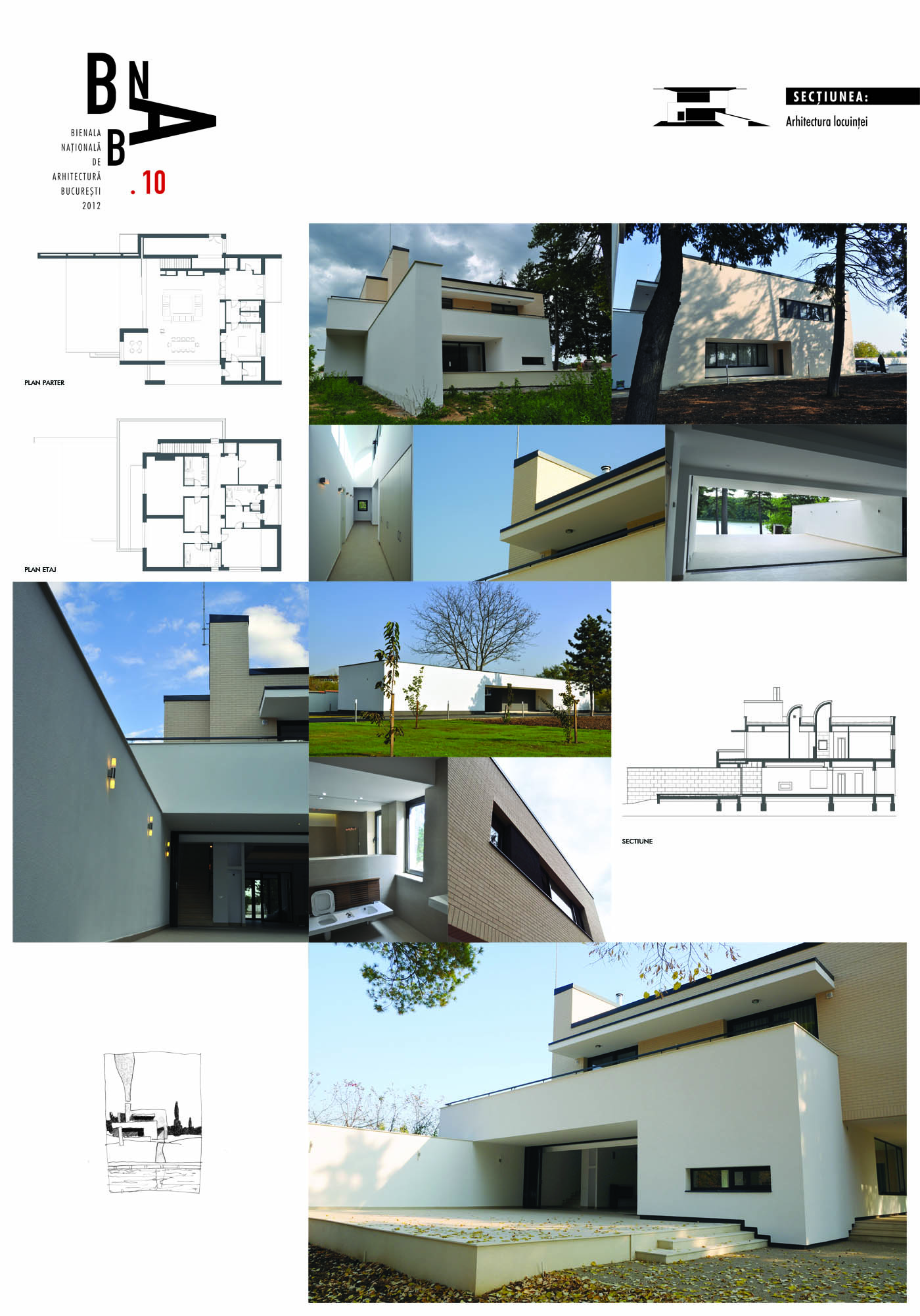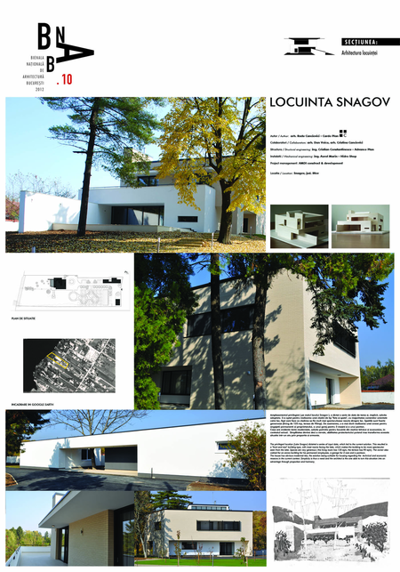Amplasamentul privilegiat ( pe malul lacului Snagov ), a dictat o serie de date de tema si, implicit, solutia adoptata. S-a optat pentru realizarea unei cladiri de tip "fata si spate", cu majoritatea camerelor orientate catre lac, fapt care face ca cladirea sa fie mult mai spectaculoasa vazuta dinspre lac. Spatiile sunt foarte generoase (living de 120 mp, terasa de 90mp). De asemenea, s-a mai dorit realizarea unei anexe pentru angajatii permanenti ai proprietarului, a unui garaj pentru 3 masini si a unui ponton.
