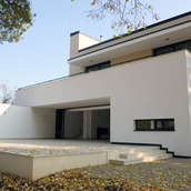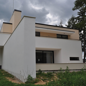 Casa are evidente tente moderniste, solutie potrivita pentru locuinte din motive tehnice si economice, in contextul actual. Simplitatea devine deci o nevoie, abilitatea proiectantului putand insa transforma aceasta situatie intr-un atu prin proportie si armonie.