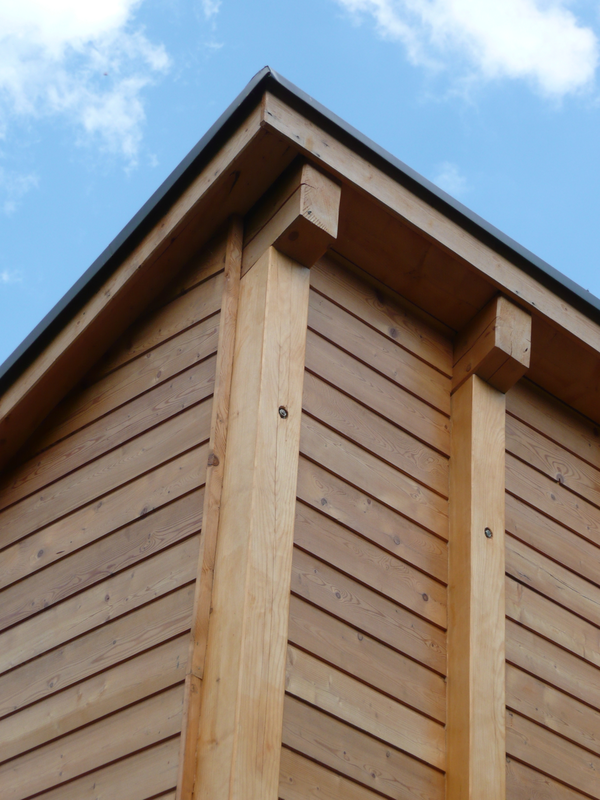 Structura aleasă a fost cea mixtă: parter in relaţie cu solul din beton, respectiv zidărie portantă si mansardă din lemn. Desigur elementele din lemn au fost concepute ca să fie vizibile astfel, planşeul peste parter atât la exterior cât şi la interior este ritmat de grinzile din brad ale structurii.