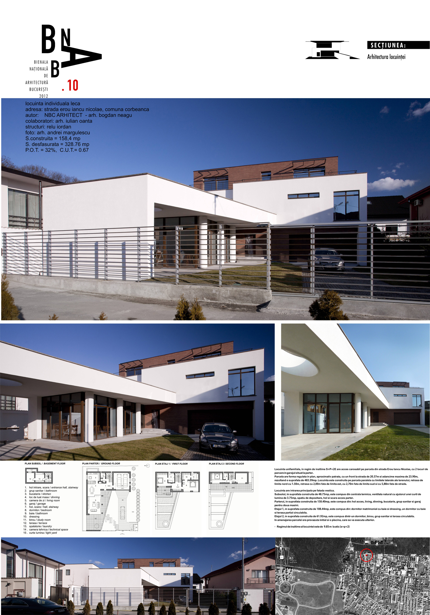 Locuinta unifamiliala, in regim de inaltime S+P+2E are acces carosabil pe parcela din strada Erou Iancu Nicolae, cu 2 locuri de parcare in garajul situat la parter.