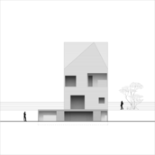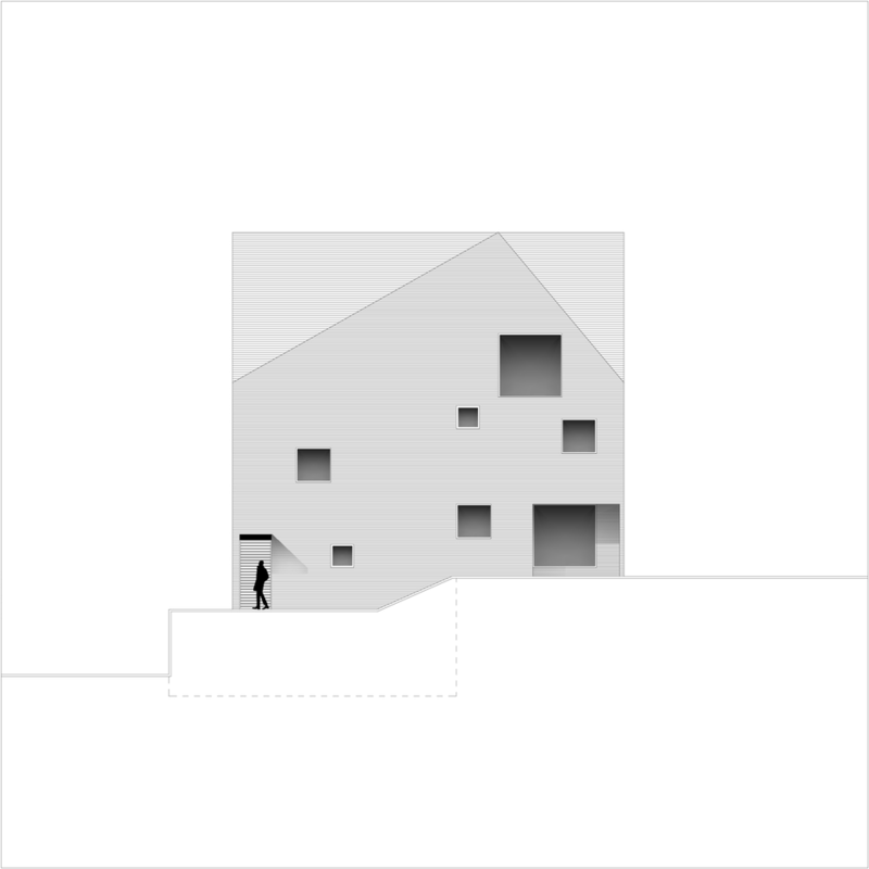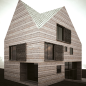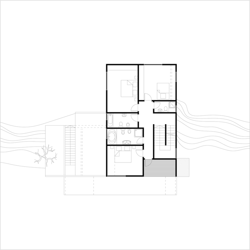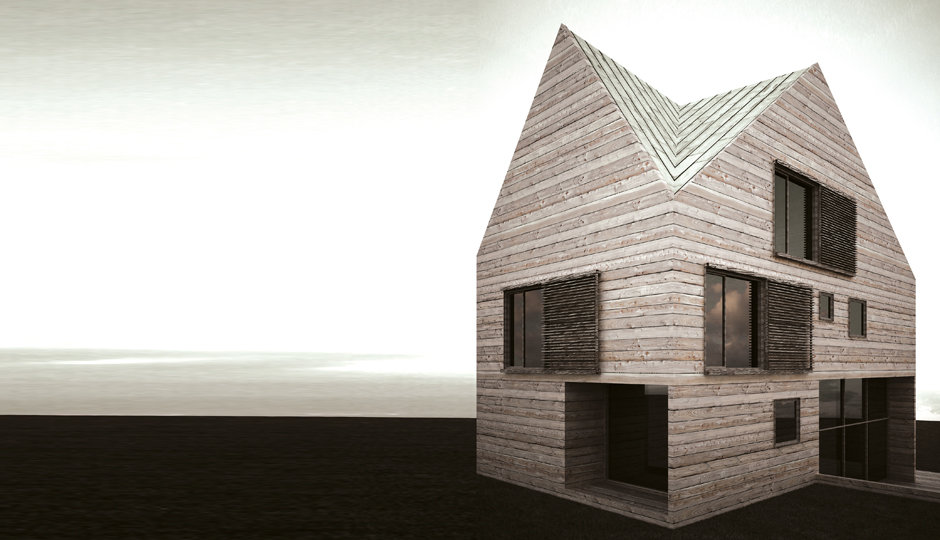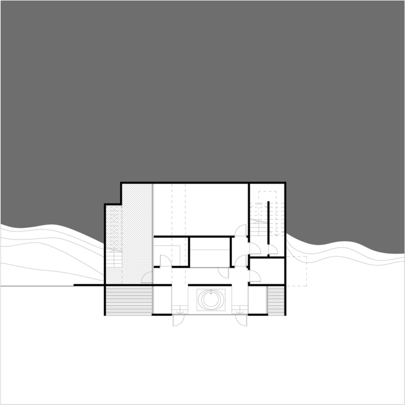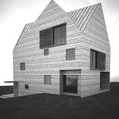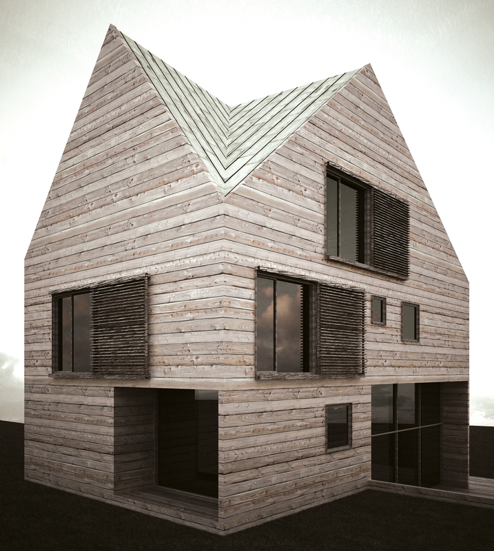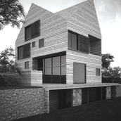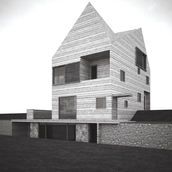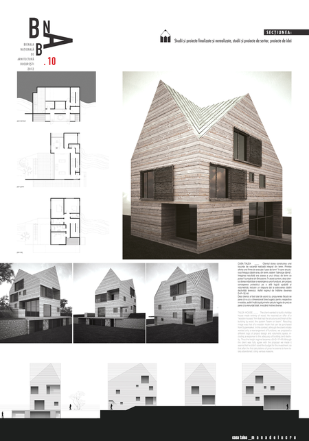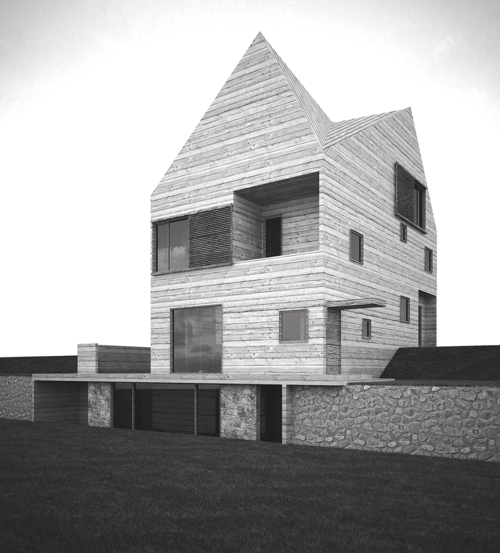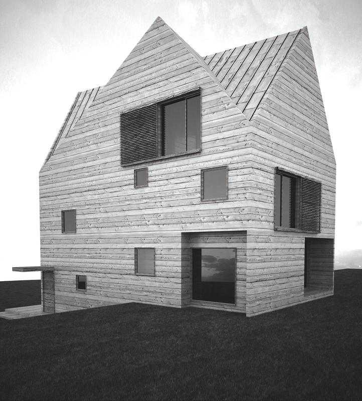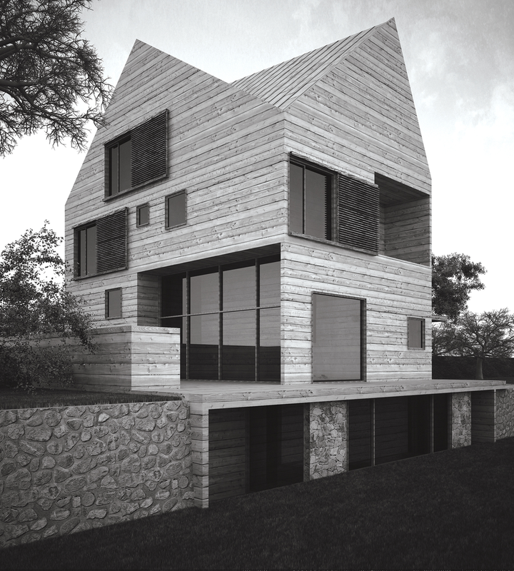 Clientul dorea construirea unei locuinţe de vacanţă realizată integral din lemn. Primise oferta unei firme de execuţie “case de lemn” în care structura şi finisajul clădirii erau din lemn, sistem “bârnă pe bârnă”. Imaginea rezultată era aceea a unui chioşc de lemn ce putea fi cumpărat din Supermarket. În acest context, deşi clientul dorea iniţial doar o rearanjare a unor funcţiuni, am propus conceperea proiectului pe o altă logică spaţială şi volumetrică, inclusiv un răspuns dat la adecvarea clădirii declivităţii terenului. Astfel regimul de înălţime devenea D+P+1E+M.