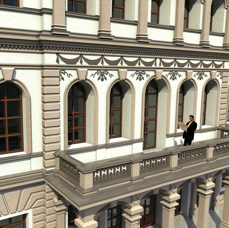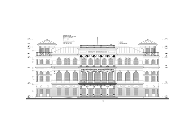 Faţada Sud va reconstitui imaginea imortalizată de Frantz Duschek în 1863-1868: un vast edificiu de factură balneară, în stil predominant neoclasic cu puternice accente romantice iar faţada Nord va reda monumentalitatea accesului din Institutul de Fete „Ioan Oteteleşanu”.