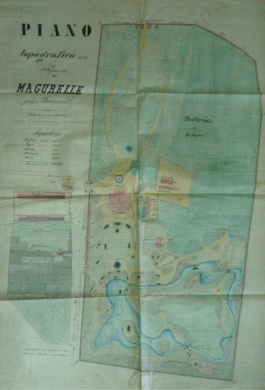 Vechiul conac al moşiei Măgurele, construit către anul 1800, a fost transformat în stil neoclasic, in perioada 1840-1845 de noul proprietar al moşiei, vornicul Ioan Oteteleşeanu. Grădina din jur a fost radical transformată de arhitectul peisagist Karl Meyer în manieră romantico-simbolică.