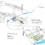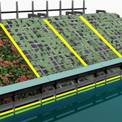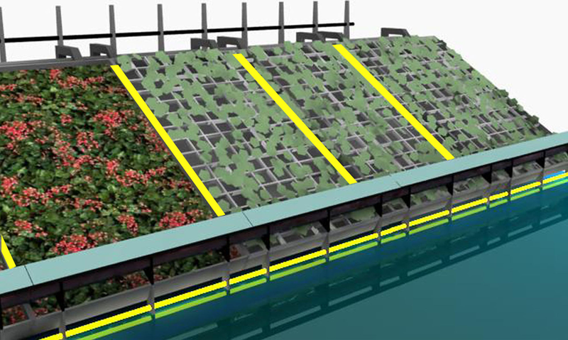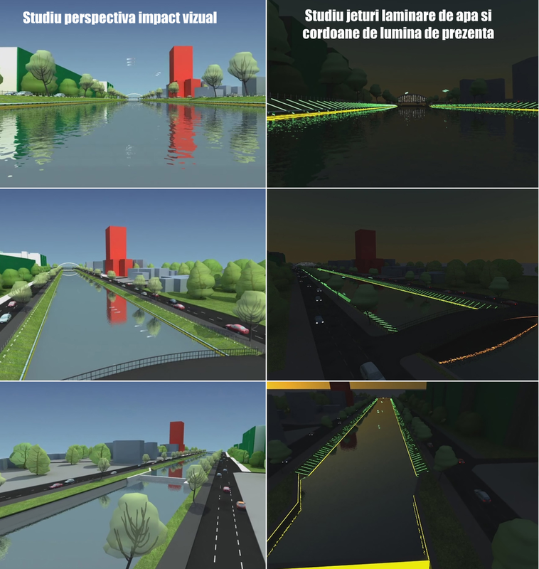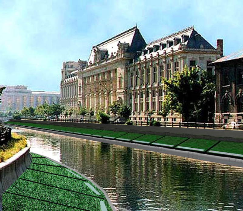 Pentru îmbunătăţirea microclimatului şi reducerea efectului „insulei de căldură” din jurul Dâmboviţei proiectul propune montarea pe malurile albiei canalului tot a unor panouri plutitoare cu vegetaţie care au un capăt articulat pe mal, cu celălalt capăt plutitor pe apă. Aceste construcţii flotabile de culoare verde sunt acoperite pe întreaga suprafata cu vegetaţie având un potenţial ridicat de evapotranspiraţie şi perioadă de vegetaţie lungă. Panourile flotabile cu vegetaţie sunt dotate cu panouri fotovoltaice cu cordoane de lumina şi cu ventilatoare transversale care trimit aerul nepoluat de la nivelul apei şi al vegetaţiei de pe panou la nivelul carosabilului şi a zonelor invecinate.