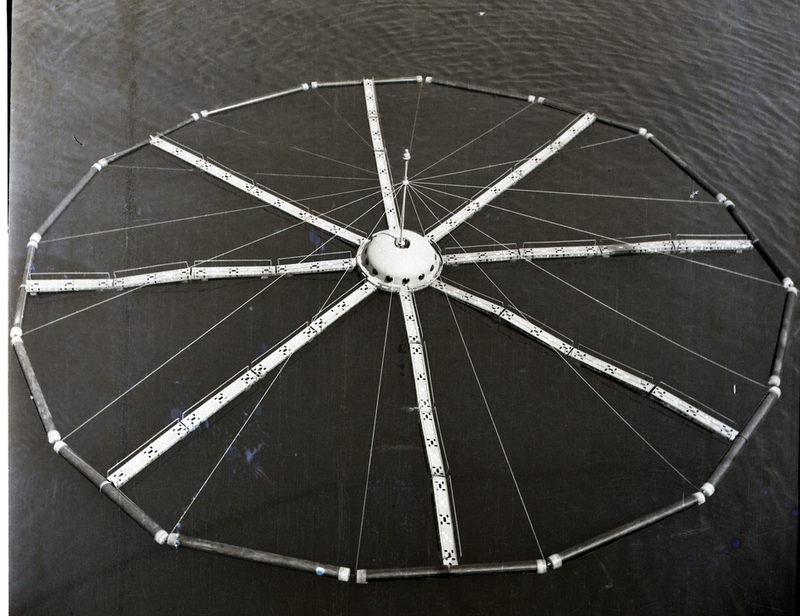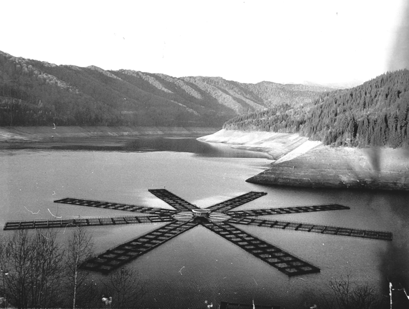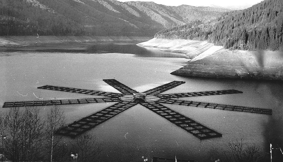 Steaua de mare- oconstructie pe apa,unica in lume ,destinata cresterii intensive a pestelui , ca de exemplu pastravul curcubeu (Salmo gairdneri), navigabila cu ajutorul velelor care se monteaza pe cablurile dintre spargatorul de valuri-amplasate pe circumferinta cercului si axul central al costructiei; acestea nu sunt montate la data fotografierii prototipului;axul central traverseaza zona central a cabinelor,permitand culisarea unei cabine etanse –minibatiscaf,actionata electromagnetic;tot aici este amplasata ancora. Instalatia este ancorata central prin intermediul unui cablu legat la un sistem de ancorare fixat pe fundul lacului ,cablul fiind infasurat pe un troliu amplasat in pontonul central.