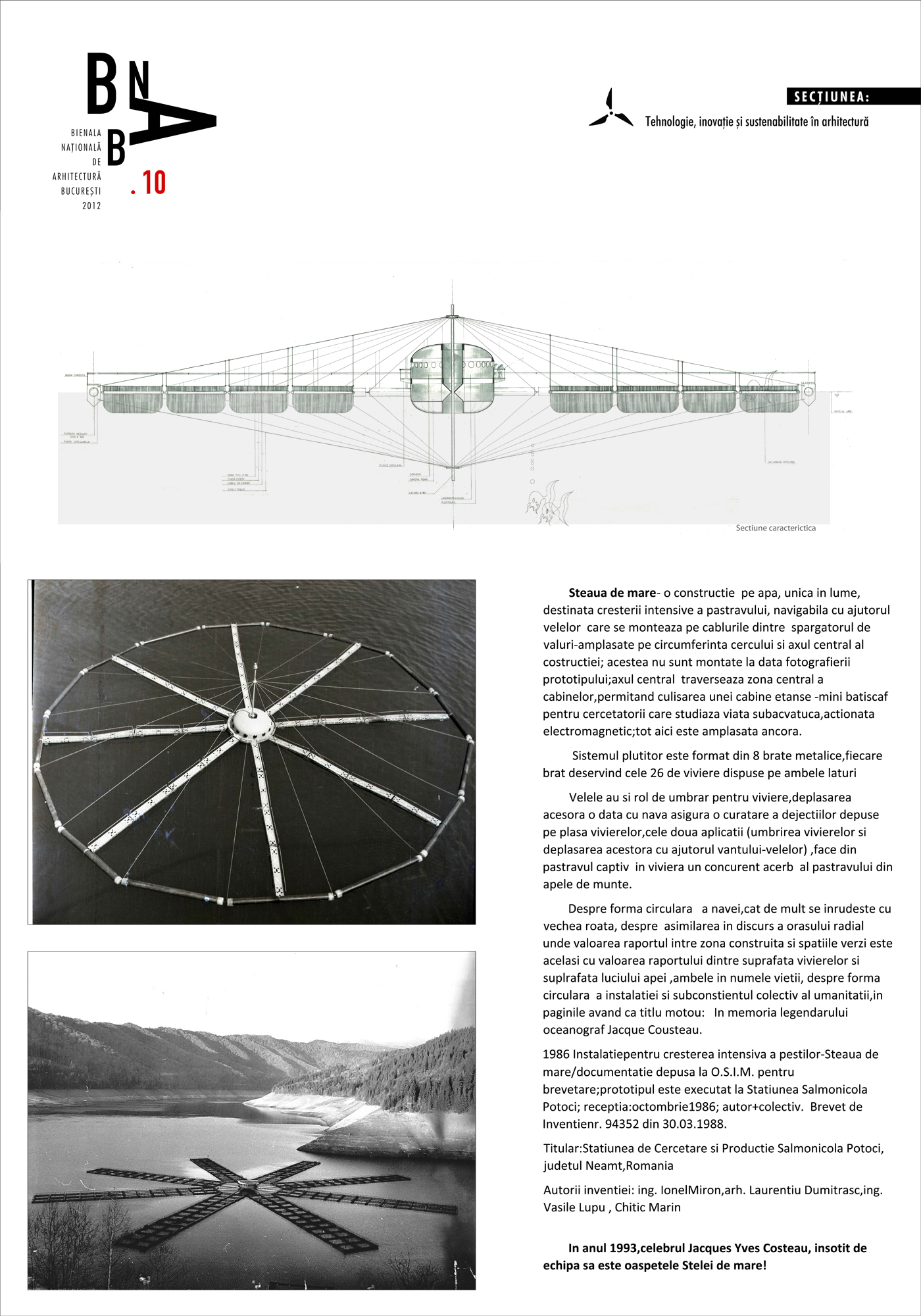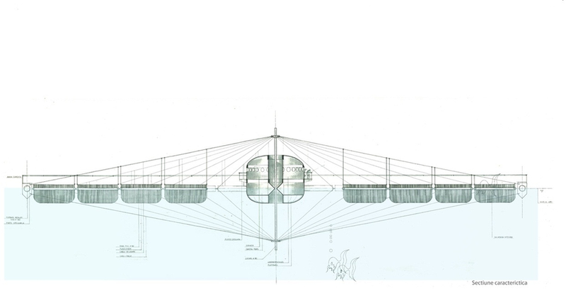 Despre forma circular a navei,cat de mult se inrudeste cu vechea roata, despre asimilarea in discurs a orasului radial unde valoarea raportul intre zona construita si spatiile verzi este acelasi ca cu valoarea raportul dintre suprafata vivierelor si suplrafata luciului apei ,iambele in numele vietii, despre forma circular a instalatiei si subconstientul colectuiv al umanitatii,in paginile avand ca titlu motou: In memoria legendarului oceanograf Jacque Cousteau.