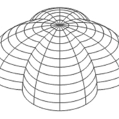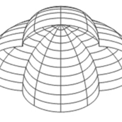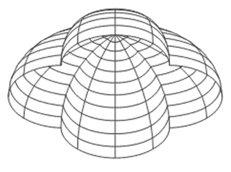 transparentă, dintr-o structură spaţială de lemn, care reia forma în plan a rotondei,