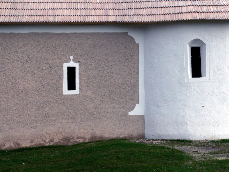 moderne, iar materialul lemnos folosit la in-tervenţie este brut, negeluit, astfel că se pot