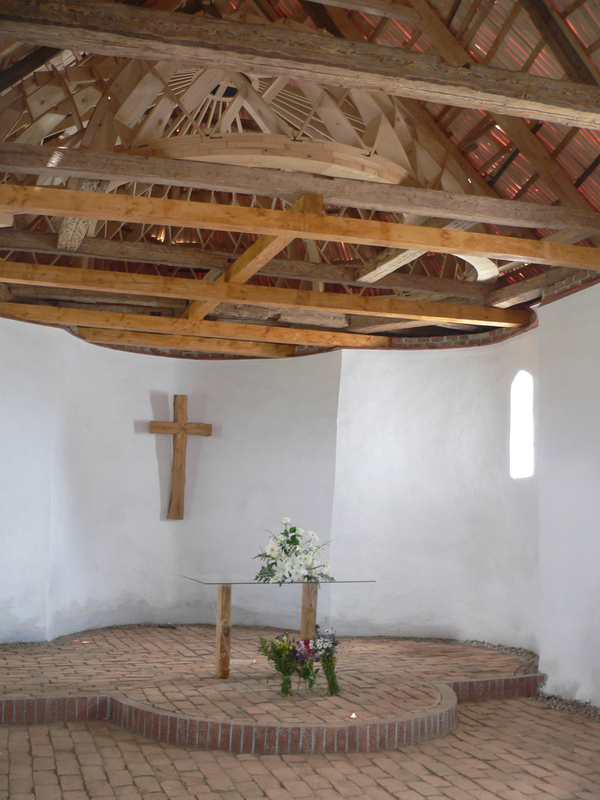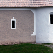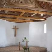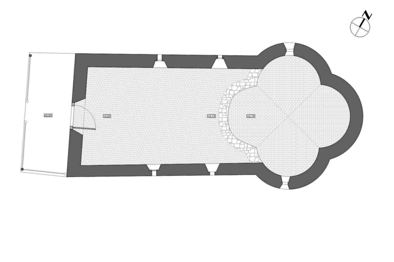 marcată latura dispărută a rotondei. La nivelul corzilor şarpantei a fost realizată o cupolă