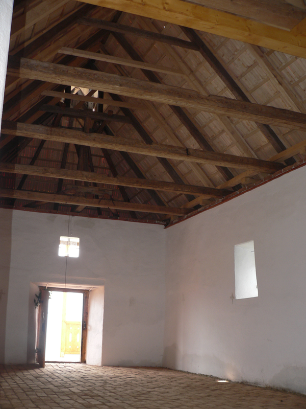 deosebi foarte clar structura originală a şarpantei şi completarea acesteia. Învelitoarea