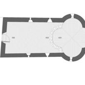 iniţial al bisericii, suprapus în mod discret situaţiei actuale. Tocmai pentru a asigura