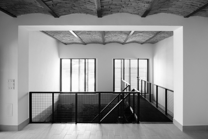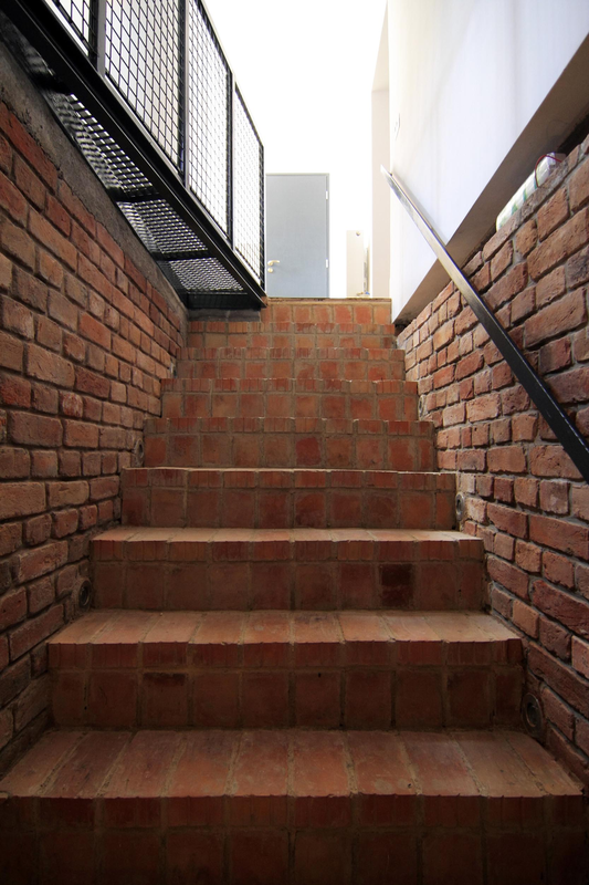 Descoperirea unui tunel boltit din zidărie - probabil parte integrantă a sistemului original de canalizare - ne-a făcut să renunţăm la a acoperi subsolul, acesta devenind un spaţiu deschis către parter.