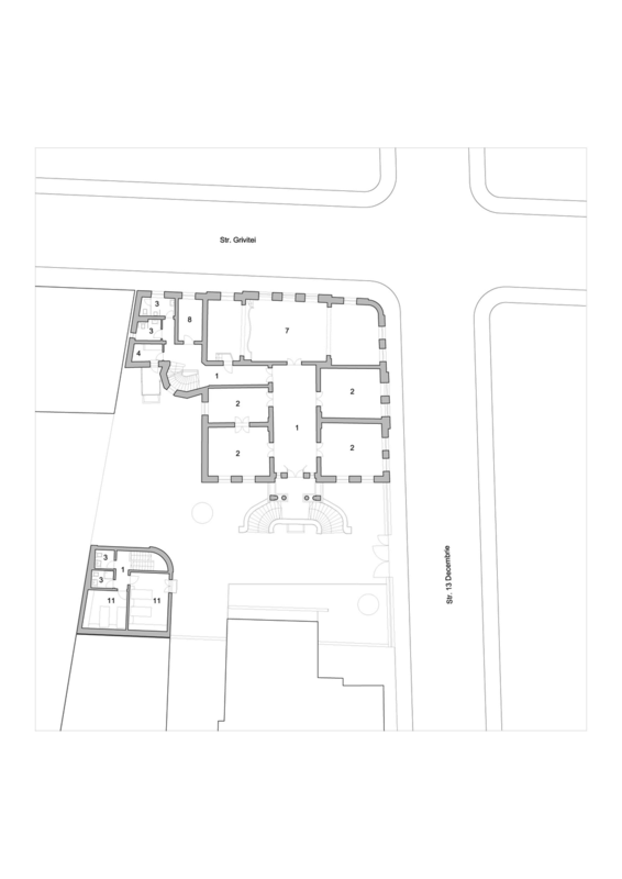 Parterul casei adăposteşte spaţii pentru birouri şi o mică sală de conferinţe, spectacole etc. Demisolul va fi folosit ca spaţiu pentru o cafenea literară; parterul anexei devine un spaţiu dedicat expoziţiilor temporare. Podul transformat în mansardă capătă funcţiunea de locuire pentru artişti rezidenţi sau invitaţi.