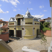 A devenit un spaţiu public, cât mai deschis către stradă şi clar delimitat în raport cu celelalte vecinătăţi. Pavajul din piatră cubică accentuează caracterul urban al ansamblului.