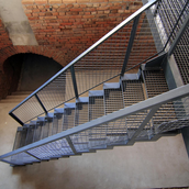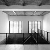 În spaţiul expoziţional de la demisol, sistemul de consolidare din beton este tratat aparent, bolţile de cărămidă sunt rostuite şi se vopsesc grinzile metalice.