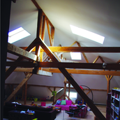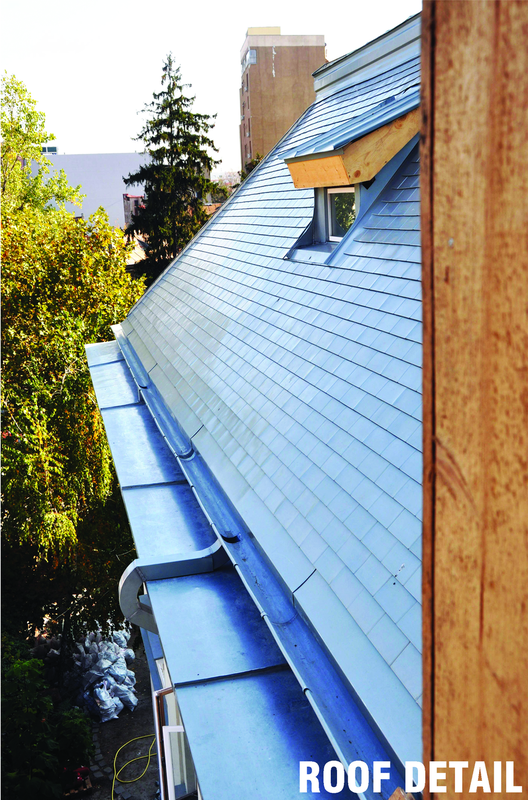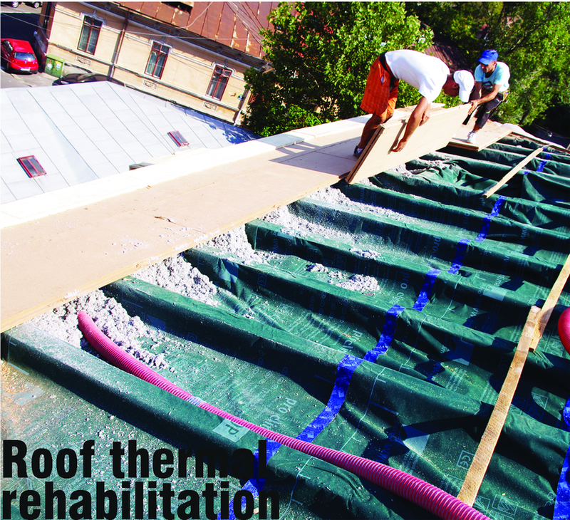 Reabilitarea termică a acoperişului a fost realizată folosind numai materiale de izolare naturale/reciclate (plăci termoizolante din fibre de lemn, fulgi de celuloză, membraneinteligente din latex), în scopul de a avea un impact redus asupra prezenţei puternice a elementelor originale ale acoperisului, oferind în acelaşi timp un grad ridicat de protecţie termică şi fonică. Utilizarea pentru învelitoare a plăcilor de titan-zinc în locul diferitelor tipuri de ţiglă şi foi de tablă adăugate parazitar în timpul anilor conferă fast şi oferă un aspect general unitar şi elegant. O temă recurentă în abordarea conceptuală iniţială a fost reciclarea/reutilizarea a cât mai multe elemente existente în scopul de a obţine un exemplu de bună practică de reabilitare. Tematica arhitecturii ca resursă a favorizat o creştere constantă a proiectului, influenţat de principiile arhitecturii durabile.