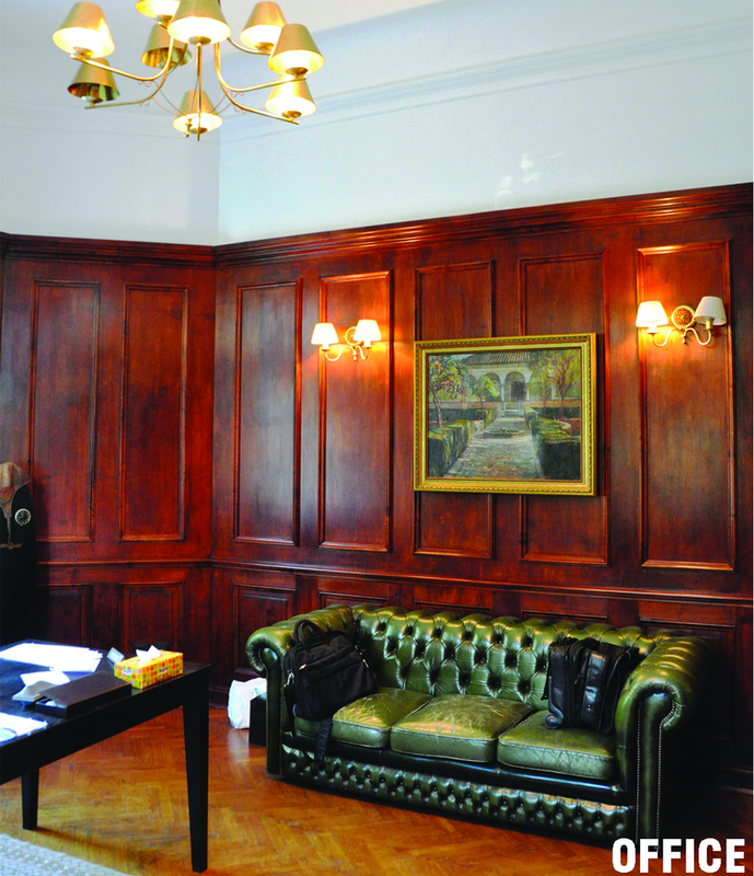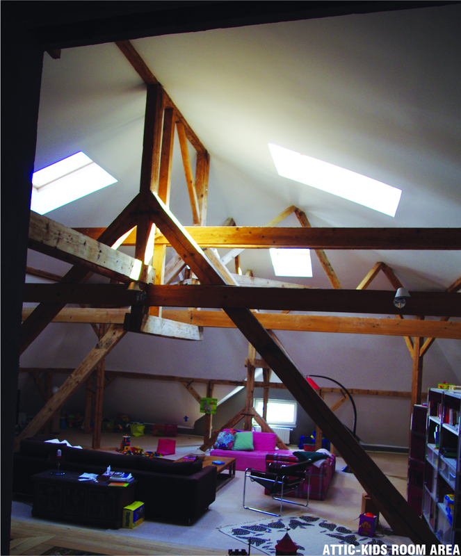 Toate structurile şi elementele din lemn au fost conservate şi reabilitate, de la panourile de pereţi şi duşumele, până la construcţia spectaculoasă a acoperişului şi a scărilor. Utilizarea mobilierului vechi sau renovat aduce ceva din amintirea vechilor interioare elegante, fiind pus în valoare, de asemenea, de utilizarea subtilă de accesorii interioare şi elemente de iluminat. Pe parcursul proiectului echipa de proiectare a urmărit obţinerea unui exemplu de utilizarea a unei cladiri vechi ca pe o casă confortabilă, (un obiectiv de bază a clienţilor), prin negocierea unei relaţii strânse cu diferite straturi tectonice ale construcţiei.