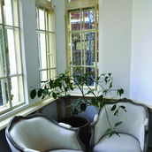 Prin folosirea unui joc de lumini şi umbre, atât pentru interior cât şi pentru spaţiile exterioare, geometria pură a elementelor de construcţie este nuanţată în profunzimi diferite. Utilizarea de accente colorate contrastante pe un fond alb general în conturarea finisajelor a permis obţinerea unei percepţii mult mai generoase a spaţiului, favorizată şi de texturile elegante ale pardoselilor vechi şi geamurile care deschid camerelespre exterior.