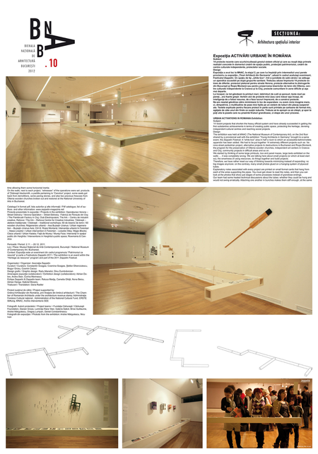 Fotografii: Autorii proiectelor + Fundaţia Cărtureşti, Dacian Groza, Luminiţa Klara Veer, Galeria Sabot, Brice Guillaume, Andrei Mărgulescu, Dragoş Lumpan, Daniel Constantinescu