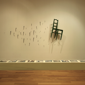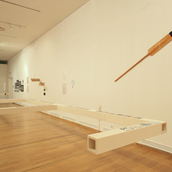 Textele explicate pentru fiecare proiect în parte sunt printate pe cartoane de format mic, agăţate de câte unul din firele ce susţin tuburile. Trebuia să te apropii ca să citeşti, şi apoi te poţi uita la pozele care nu prezintă finaluri grandioase, ci etape ale unor procese.