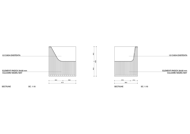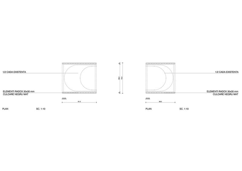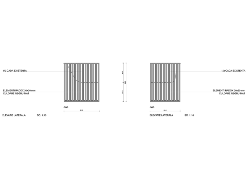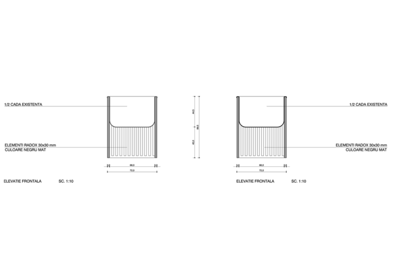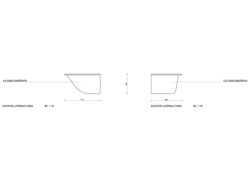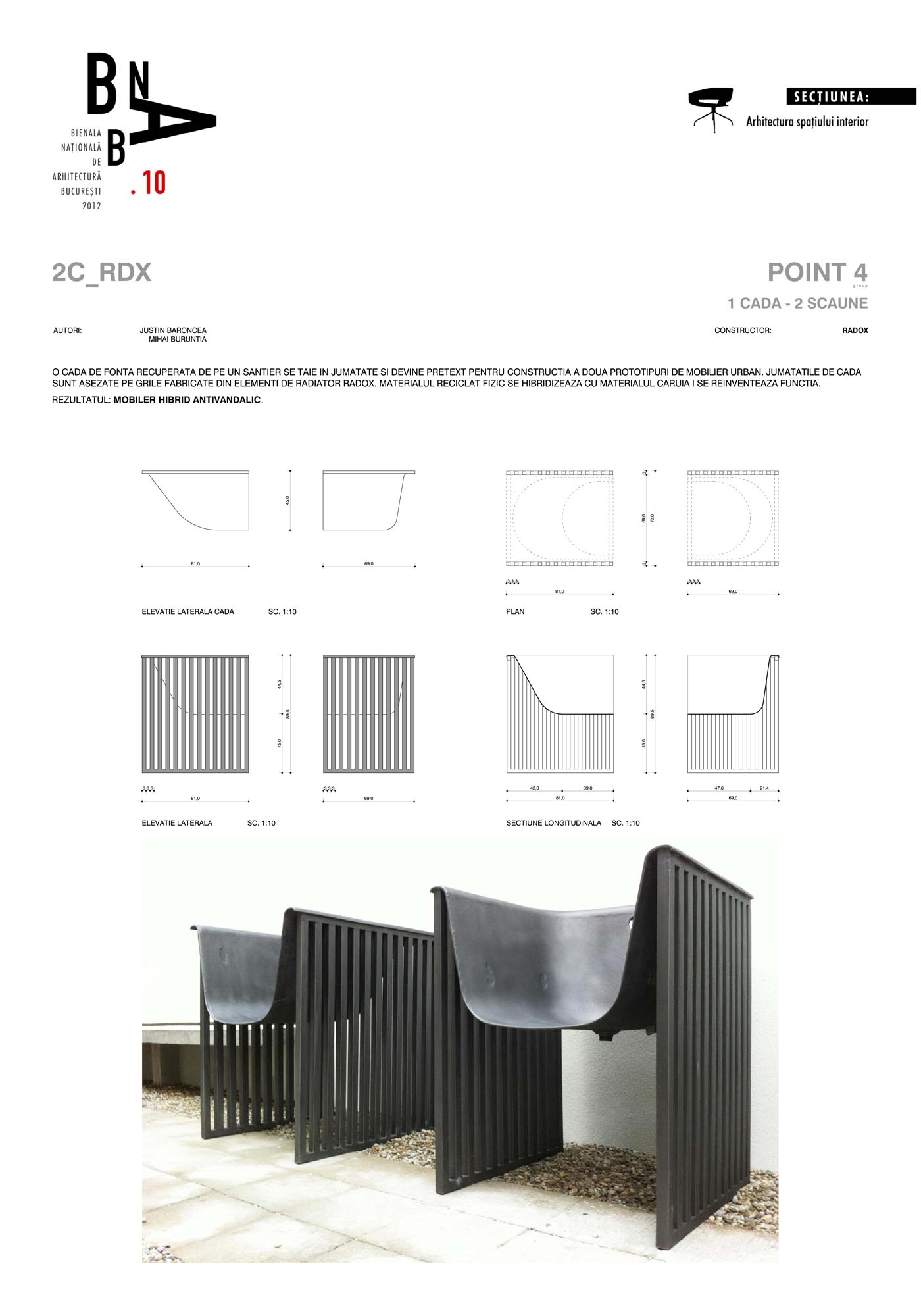 O cada de fonta recuperata de pe un santier se taie in jumatate si devine pretext pentru constructia a doua prototipuri de mobilier urban. Jumatatile de cada sunt asezate pe grile fabricate din elementi de radiator radox. Materialul reciclat fizic se hibridizeaza cu materialul caruia i se reinventeaza functia.