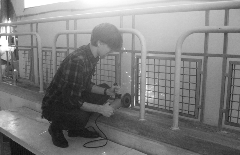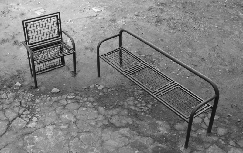 In timpul proiectului Cndb ocupat, Eduard Gabia s-a apucat sa taie relicve din metal si sa le imparta participantilor. In timp ce Edi taia bucatile de fier, a aparut ideea reciclarii balustradelor. Au fost demontate bucati de balustrade cat pentru 2 piese de mobilier urban: o banca si un scaun. Materialul taiat a fost transportat manual de Justin Baroncea in atelierul Nonei Serbanescu. Nu s-a dorit folosirea metalului ca materie prima ci conservarea imaginii confectiilor metalice rudimentare si deloc minimaliste montate in extinderea Tnb.