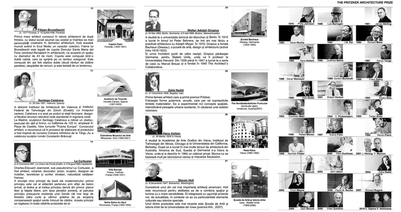 Urmează o cronologie a arhitecţilor români şi universali cu biografiile şi operele lor reprezentative.