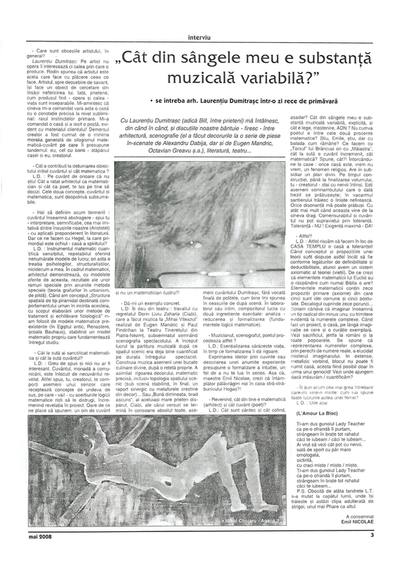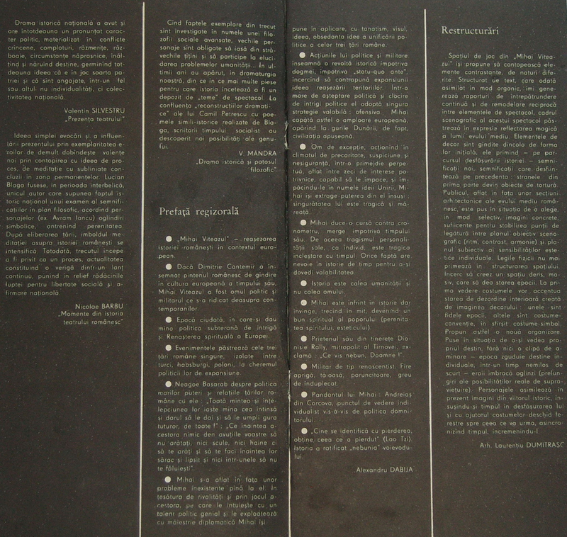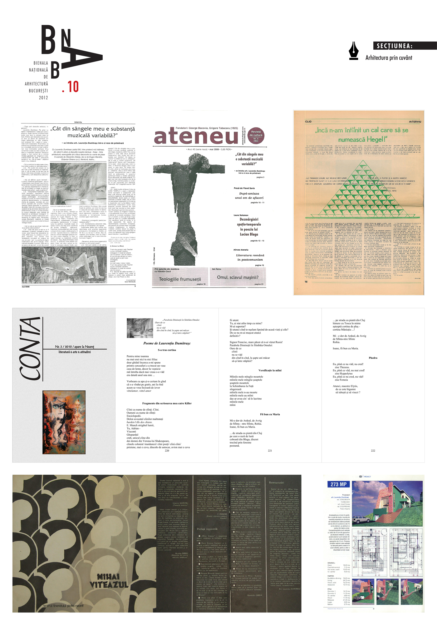 Revista Ateneu - interviu, Revista Conta poeme ,Clio -Supliment la Publicatia Realitatea de Emil Nicolae , Caietul program de la Teatrul Tineretului cu spectacolul Mihai Viteazu , Revista ID PROIECT