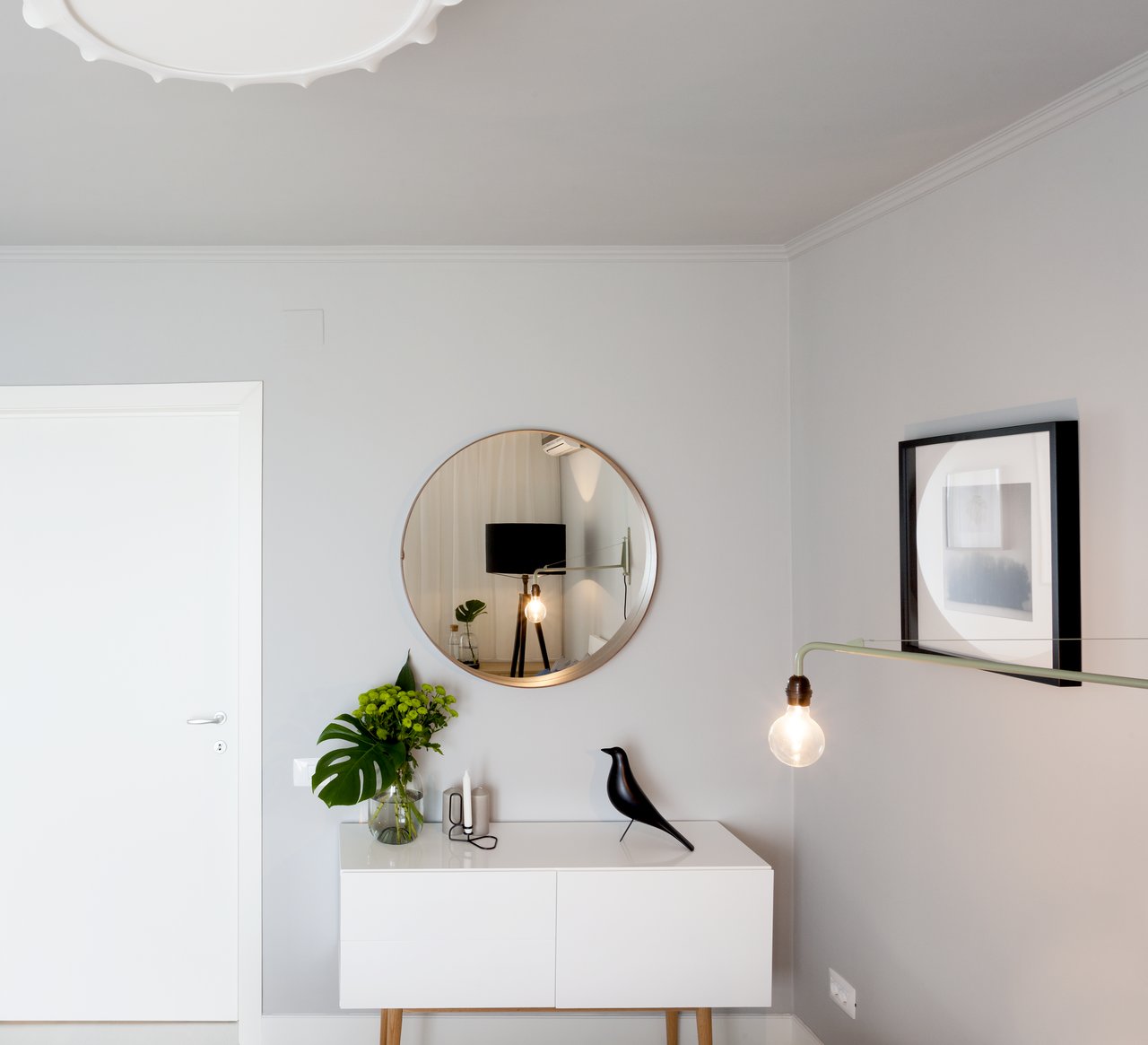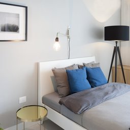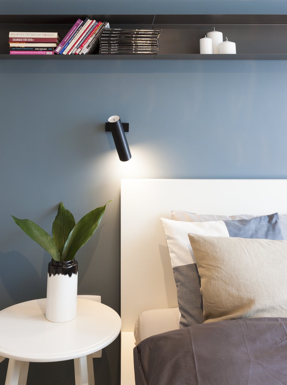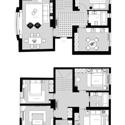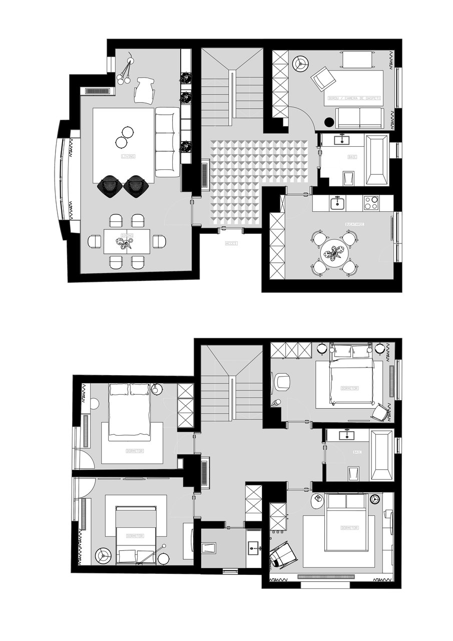 Dormitoarele de oaspeti, amplasate la etaj, privesc spre mare sau spre grădina casei. Sunt spații intime, tratate diferit, după modelul camerelor de boutique hoteluri, dar menținând liniile simple ale interioarelor nordice. De la acest nivel se poate ajunge pe terasa ce acoperă întreaga casă, un adevărat punct de observație și meditație.