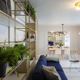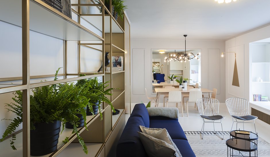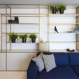 Casa este împărțită în 4 zone funcționale. Nivelul intrării, parterul, este dominat de livingul generos, care oferă o relație spectaculoasă cu Marea Neagră. Deși, instinctiv, atenția este focalizată spre deschiderea panoramică, interiorul reușește să creeze o atmosferă aparte prin poziționarea oglinzilor pe cele două laturi scurte ale spațiului, creând astfel o impresie de continuitate, ca o reinterpretare prin mijloace arhitecturale a senzației de infinit al peisajului maritim. Livingul este impărțit în mai multe zone funcționale, dar imaginea este unitară, cu o cromatică bazată pe nuanțe de alb și albastru, cu accente de alamă, definind astfel un caracter elegant și relaxant în același timp.