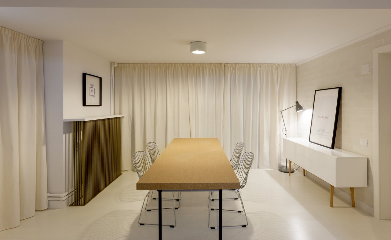 Demisolul este adresat activităților comune de team-building. Spațiul din Creative Lab, care se izolează față de mediul înconjurător, este împărțit în două zone distincte, care pot funcționa independent sau impreună. Delimitarea ușoară prin draperii albe și albastre, formează două capsule de lucru, una complet albă, un adevărat laborator de distilare a ideilor, iar cealaltă ludică si colorată, plină de inspirație pentru formularea conceptelor creative.