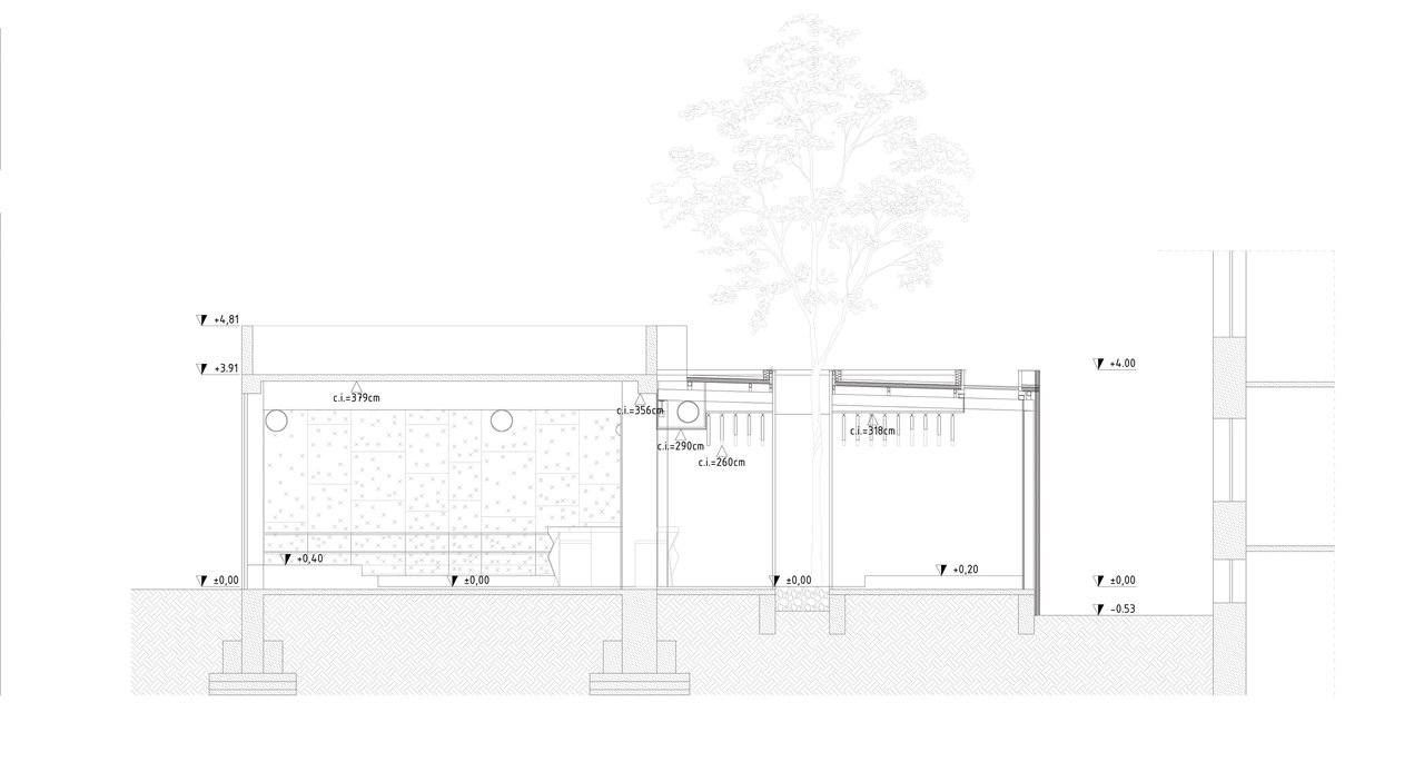 Odată cu această nouă intervenţie a apărut şi oportunitatea unei extinderi noi spaţiale către spate ca un fel de posibilă „grădină ascunsă“ acoperită.