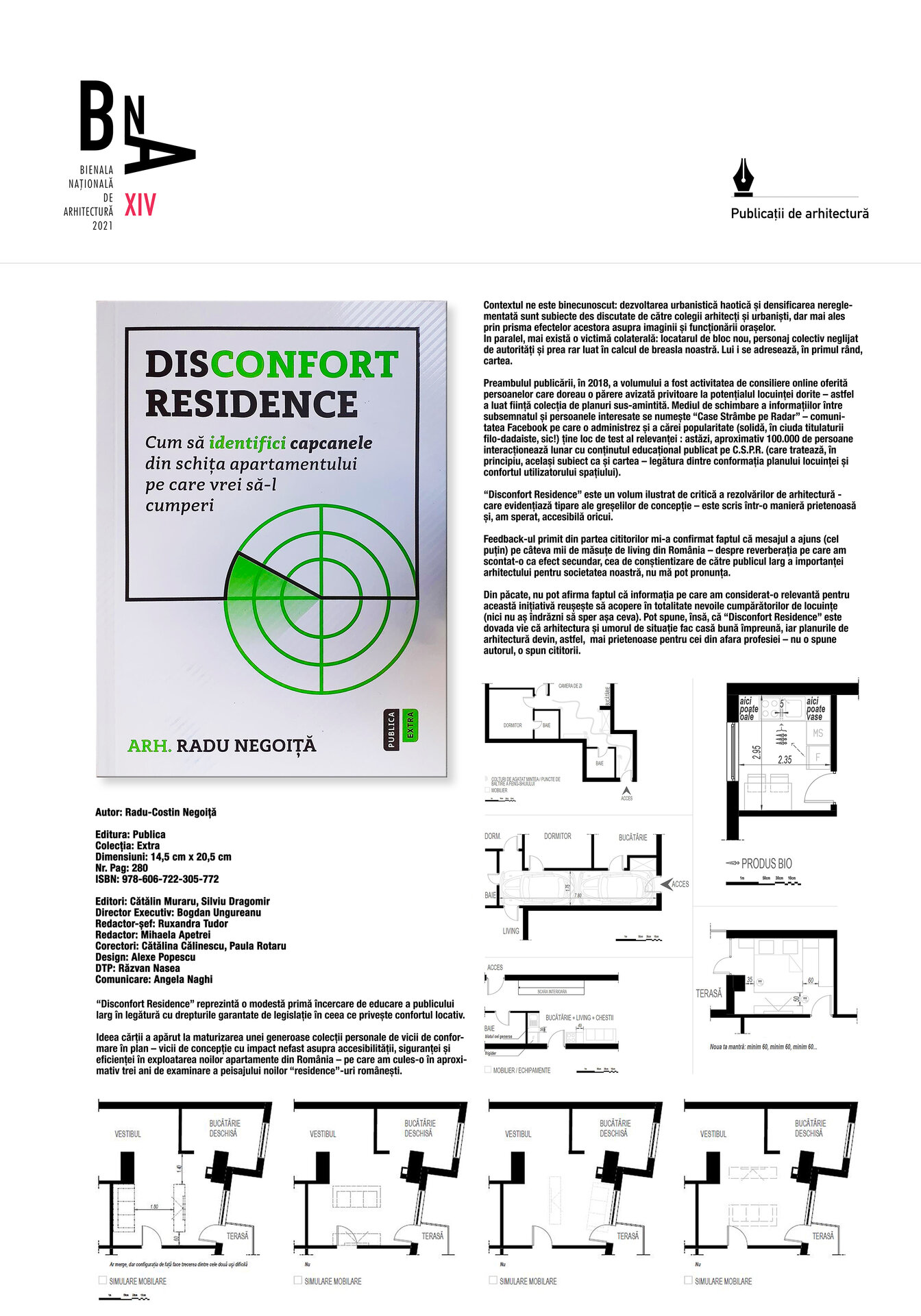 “Disconfort Residence” este un volum ilustrat de critică a rezolvărilor de arhitectură - care evidențiază tipare ale greșelilor de concepție – scris într-o manieră prietenoasă și, am sperat, accesibilă oricui.