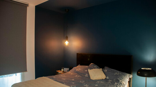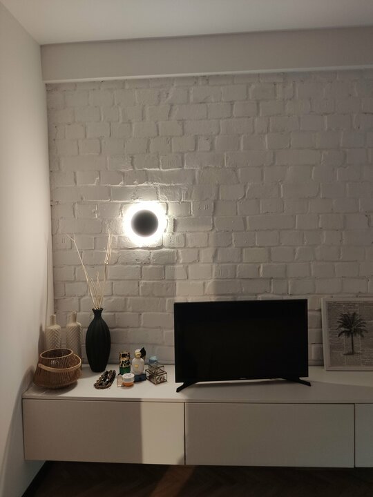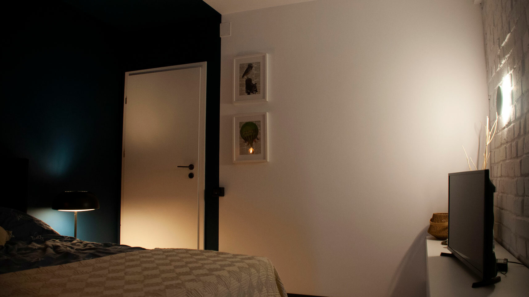 Astfel am creat un perete accent ce translatează spațiul exterior al balconului în interior – living. Iar în dormitor, cărămida vopsită alb a îndulcit atmosfera și dă unitate amenajării.