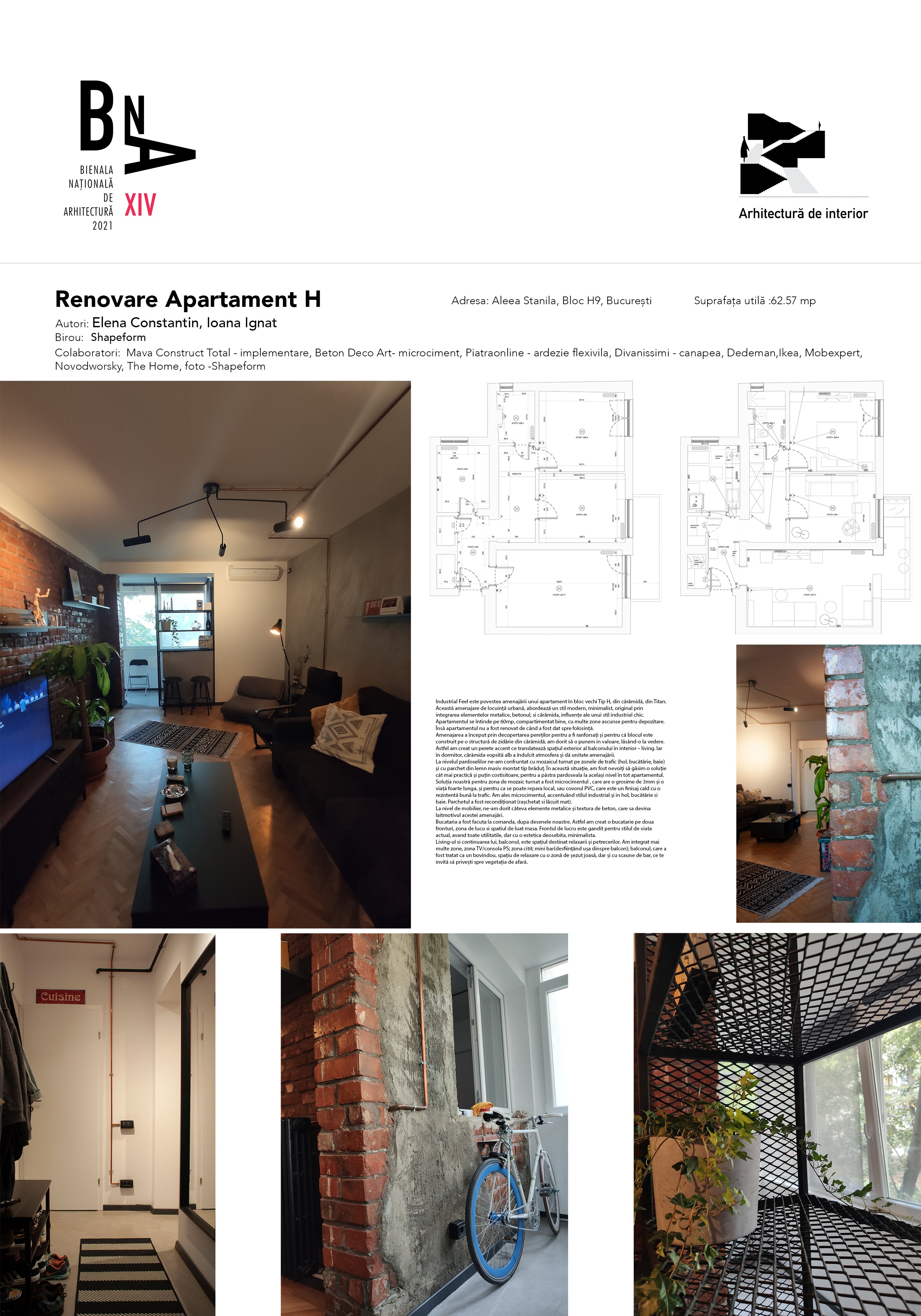 Industrial Feel este povestea amenajării unui apartament în bloc vechi Tip H, din cărămidă, din Titan. Această amenajare de locuință urbană, abordează un stil modern, minimalist, original prin integrarea elementelor metalice, betonul, si cărămida, influențe ale unui stil industrial chic.