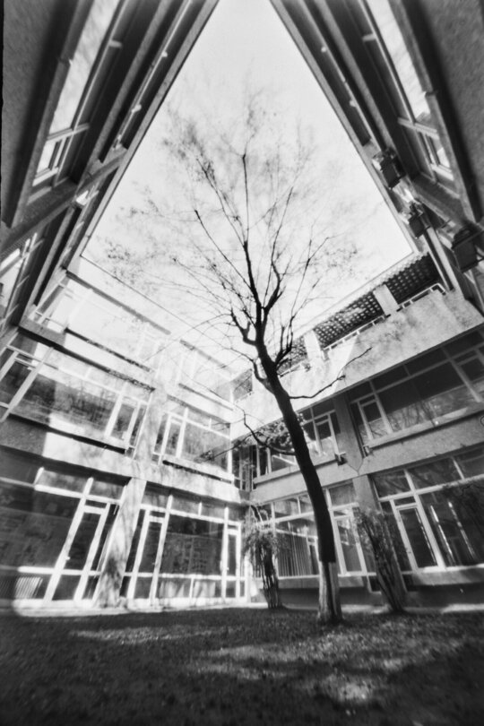 Fotografiile sunt realizate pe rollfilm 120, alb-negru, cu o camera pinhole ultra wide-angle printata 3D.