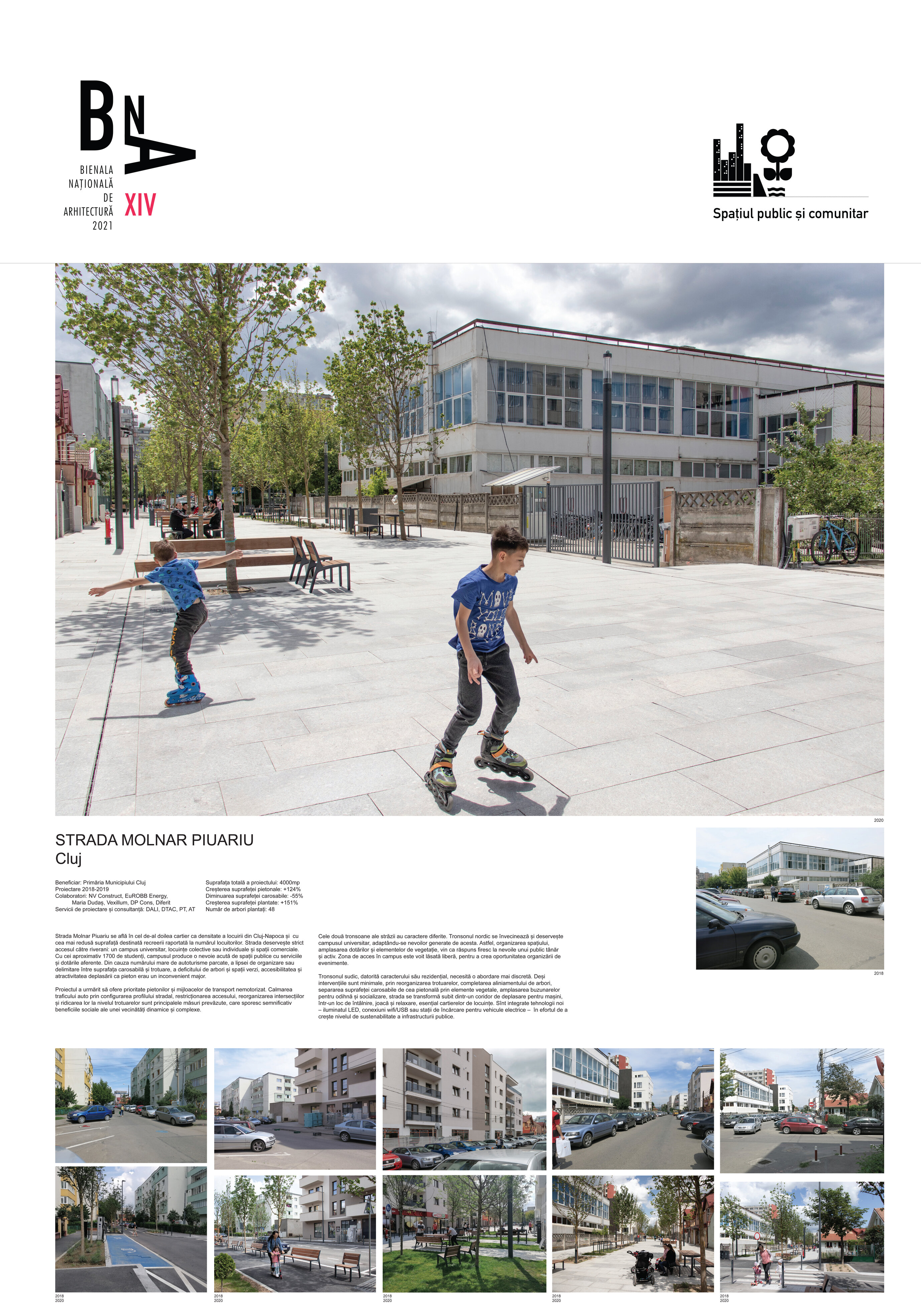 Strada Molnar Piuariu se află în cel de-al doilea cartier ca densitate a locuirii din Cluj și cu cea mai redusă suprafață destinată recreerii raportată la numărul locuitorilor. Strada deservește strict accesul către riverani: un campus universitar, locuințe colective sau individuale și spații comerciale. Cu cei aproximativ 1700 de studenți, campusul produce o nevoie acută de spații publice cu serviciile și dotările aferente. Din cauza numărului mare de autoturisme parcate, a lipsei de organizare sau delimitare între suprafața carosabilă și trotuare, a deficitului de arbori și spații verzi, accesibilitatea și atractivitatea deplasării ca pieton erau un inconvenient major.